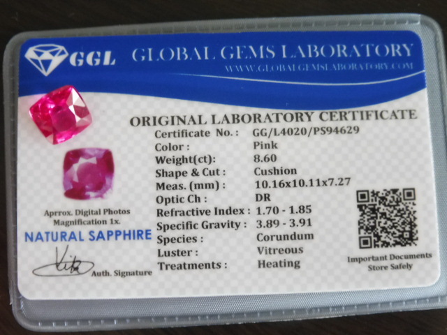 実物の方がテリ強くキレイ!鑑別付 ピンクサファイア ホットピンク 約8.60ct ルース 裸石 リングやペンダントに!