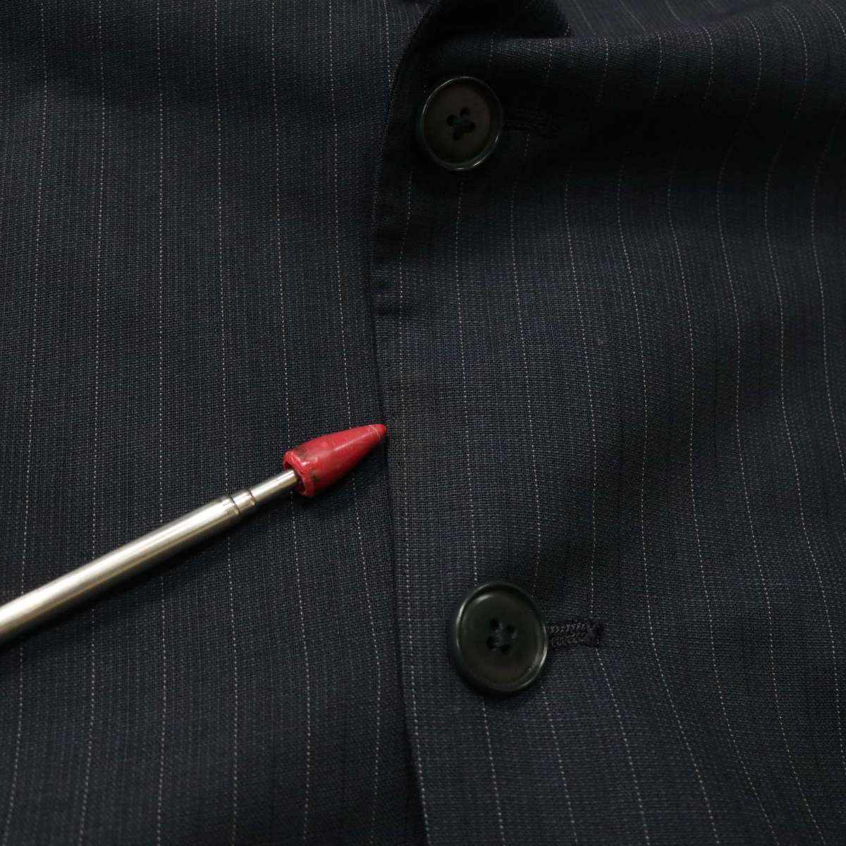 ジャケット前ボタン付近にごく薄い汚れがございます。他に目立った汚れ等なく着用に問題はございません。