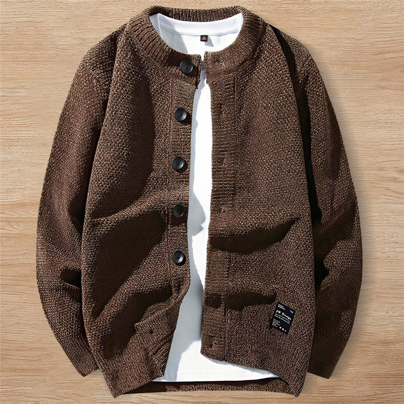 L5008-XL ブラウン/新品 メンズ ウール混 カーディガン 長袖 秋冬 厚手 柔らかい クラシック シンプル 着心地最高 おしゃれ アウター