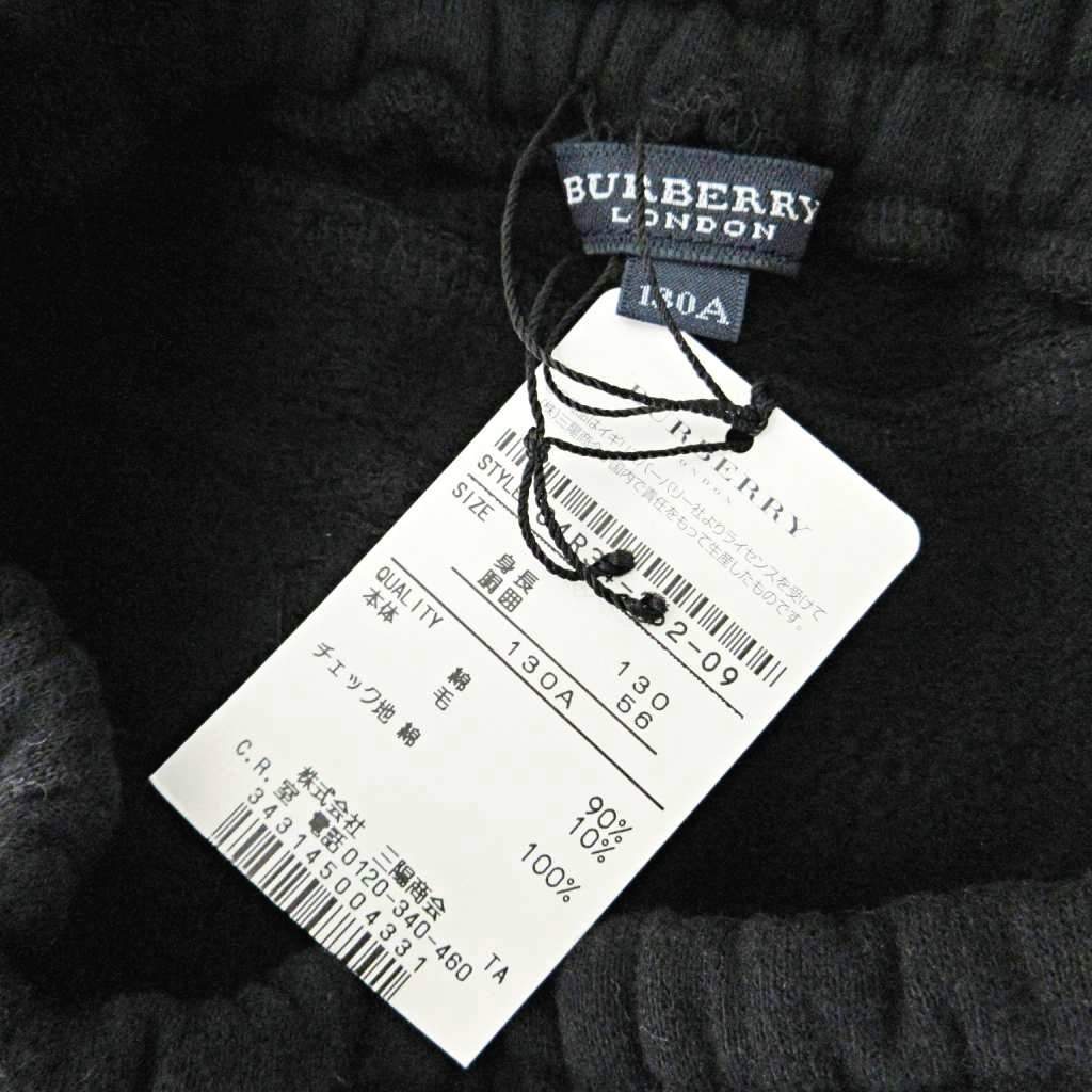 バーバリー ロンドン BURBERRY LONDON タグ付き キッズ カーゴスウェットパンツ ノバチェック コットン ウール混 130 黒 0808