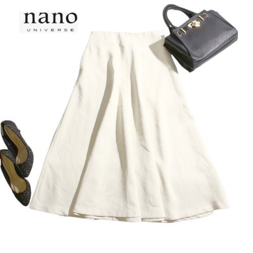 美品 ナノユニバース nano・universe シンプル 春 夏 ジャージ― Aライン フレアスカート ロングスカート ホワイト 白 9号 38 無地 ミセス