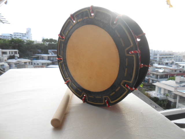 ♪ | (送料無料) 消費税不要、同梱OKです+++♥♥♥ ![]() +++ エイサー用締め太鼓30cm +++ 沖縄エイサーの演舞で使用する中太鼓です。 見た目とは逆に意外と軽めにで、片手で軽々持て負担が有りません!! デザインはシンプルの中にカッコよさが引き立つ仕上がり。 音の良さもモチロン抜群!! 色合いも組み合わせが最高な黒と赤です! 皮が黄色いのは水牛皮膚色で強度を保つ為、弱漂泊処理を している為の加工処理の違いです、汚れや中古では御座いません エイサー用絞め太鼓 サイズ 厚み約11cm 横約 30cm バチ付き ![]() |