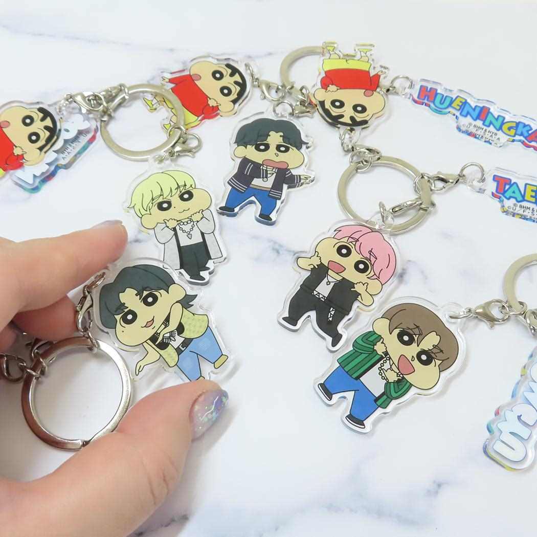 TXTとクレヨンしんちゃんコラボグッズ登場 韓国アイドルグループ[TOMORROW X TOGETHER]x大人気アニメ[クレヨンしんちゃん]のコラボグッズが登場 こちらは人気アイテム[アクリルキーホルダー]ダイカットの3連タイプでとってもかわいいバッグやポーチにつけてもよし、飾ってもよし…コレクションにぴったりかわいいキーホルダーいろいろあるからお気に入りをコレクションしてくださいパーツサイズ:約30x53x3mm(取り付けパーツを除く)