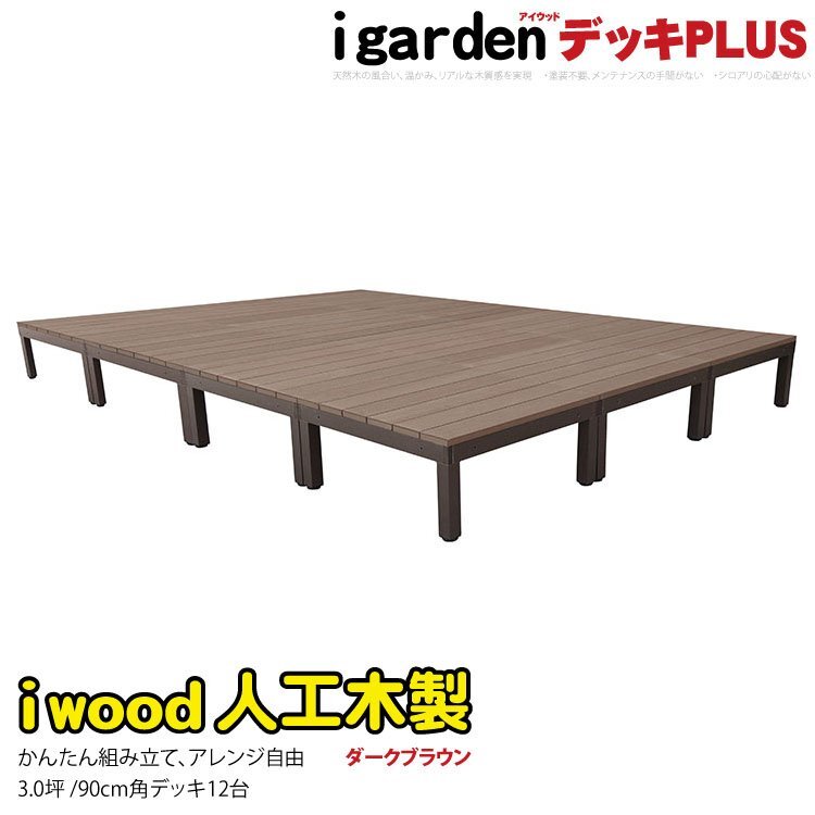 igarden アイウッドデッキ PLUS オープンタイプ 12点セット 3.0坪 ダークブラウン 樹脂製 アルミ テラス バルコニー ベランダ 10385-12ddb
