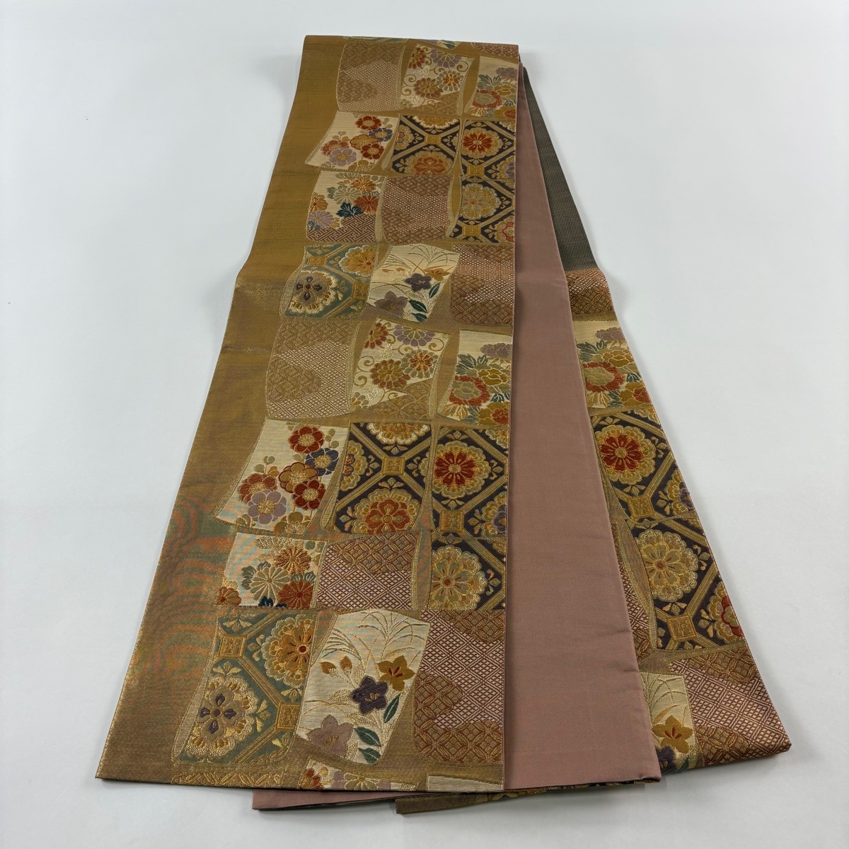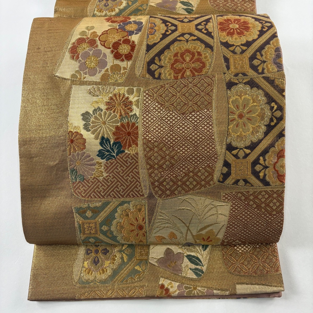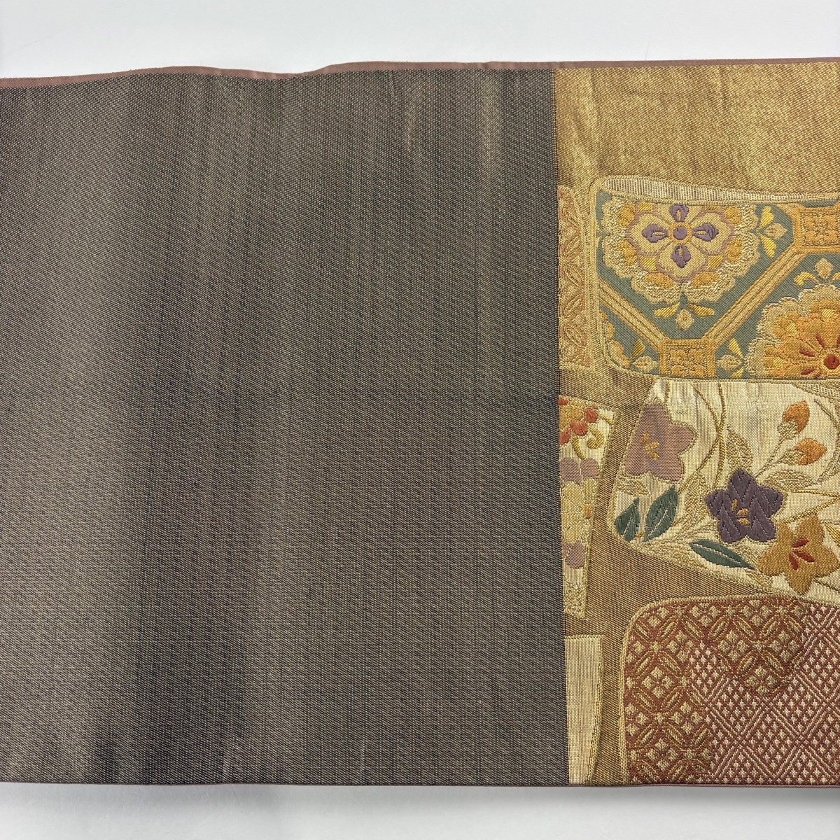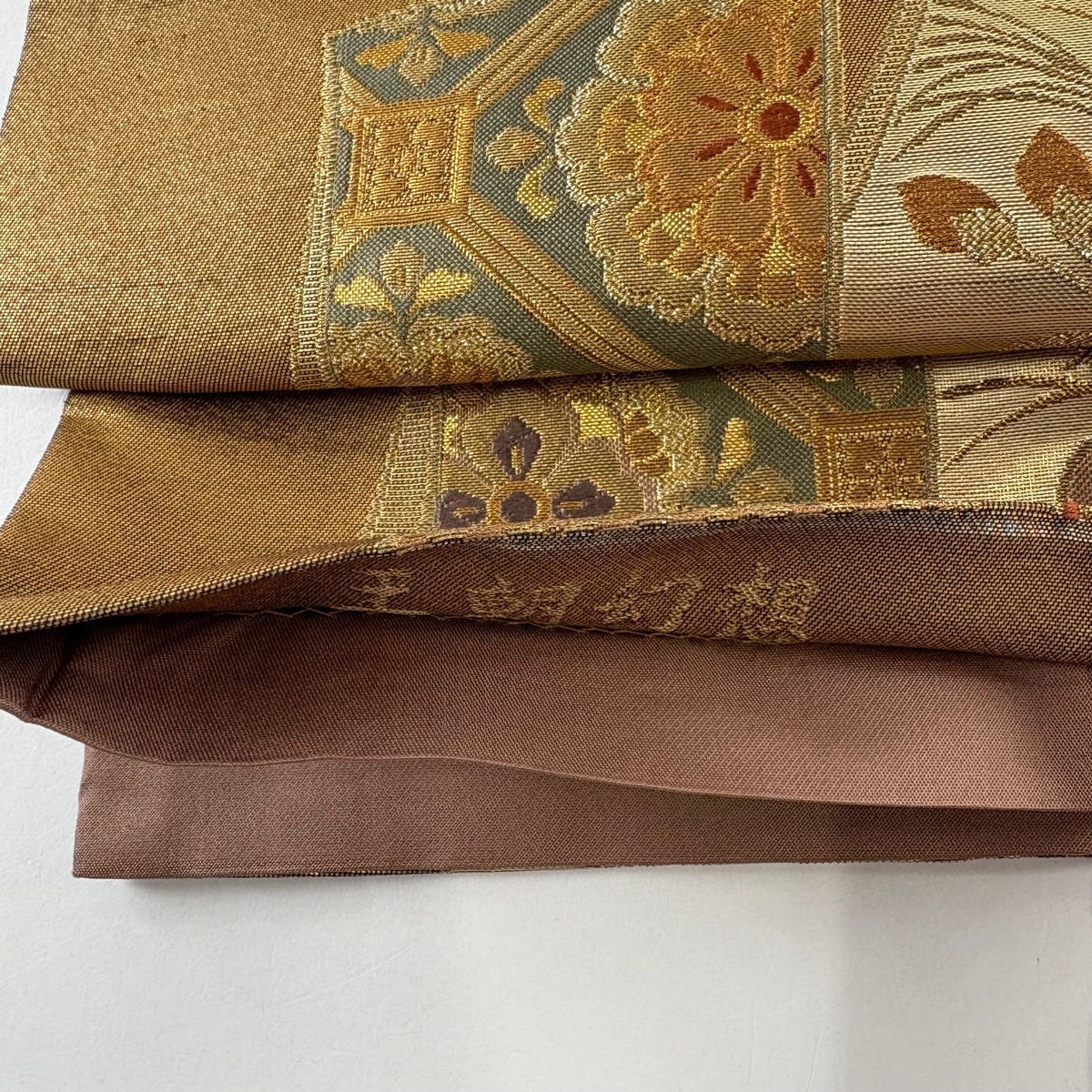 | 袋帯 秀品 王朝幻想 誰が袖 草花 金糸 箔 金色 六通 正絹 【中古】 |