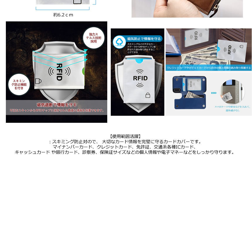 | 送料無料!!! 送料及び下記のご案内をご確認の上、ご入札お願い致します。 離島地域を除く九州、四国、本州まで送料無料。 ※北海道は+1000円、離島地域及び沖縄県は+3000円にて承ります。(発送前に加算) ※画像内にカラー及びサイズ等の選択が可能と記載がある場合がございますが、 お届けする物はタイトルまたは商品説明文に記載の物です。 ★※注文後のカラー変更や異なるカラー・サイズ指定等は一切承っておりません。 ※★※仕様(ロゴデザイン/ロゴ有無等も含む)は予告なく変更する場合があります。 ※多少の汚れや小傷がある場合がございますがご了承ください。 梱包は簡易包装ですので、箱の角落ち等はご了承願います。 【商品説明】 お得な10枚セットの磁気防止ケース!! 様々な場面で大活躍!あらゆる磁気を遮断する! ICカード同士の干渉防止に! クレジットカードの磁気不良対策に! スキミング防止に! 交通系のICカード同士が干渉して、改札口でスムーズに通れない! 使用しないICカードを入れておくだけで 磁気を遮断し、反応しません! カードを入れておくだけで 外部からの磁気の影響を受けにくくなります。 銀行カードやキャッシュカード、マイナンバーカードなど カードにはあなたの大切な情報が数多く保存されています。 個人情報などスキミングから個人情報などを防ぎます! ======================================== 【商品仕様】 サイズ:約8.8cm×6.2cm 重さ:約2g ※スキミング防止機能はあくまで対策となり、 100%防ぐものではありませんので予めご了承ください。 ======================================== ※詳細は画像にてご判断ください ![]() ![]() ![]() ![]() ![]() |