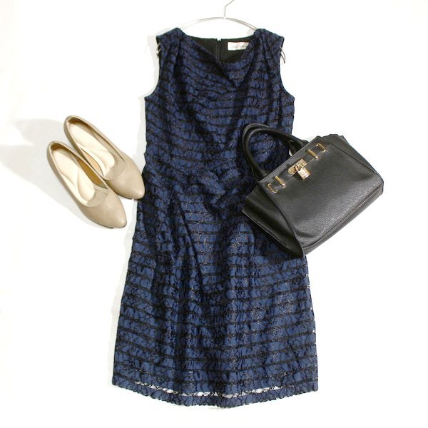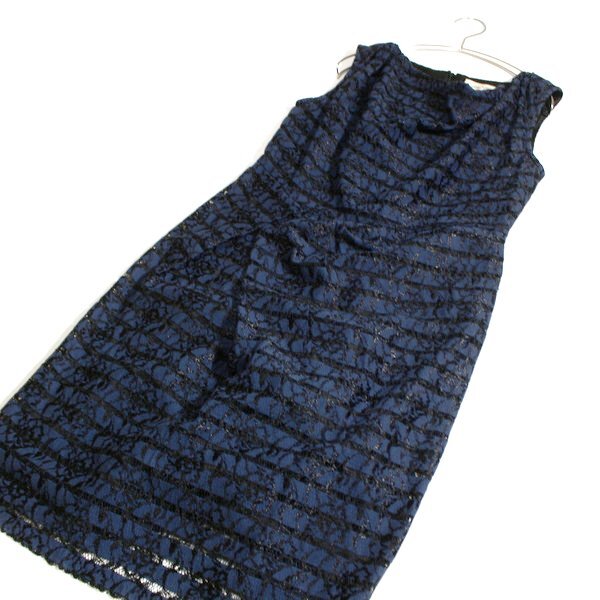 美品 Nano Universe ナノユニバース 可愛い レース ボーダー柄 ワンピース F 春 夏 25B08