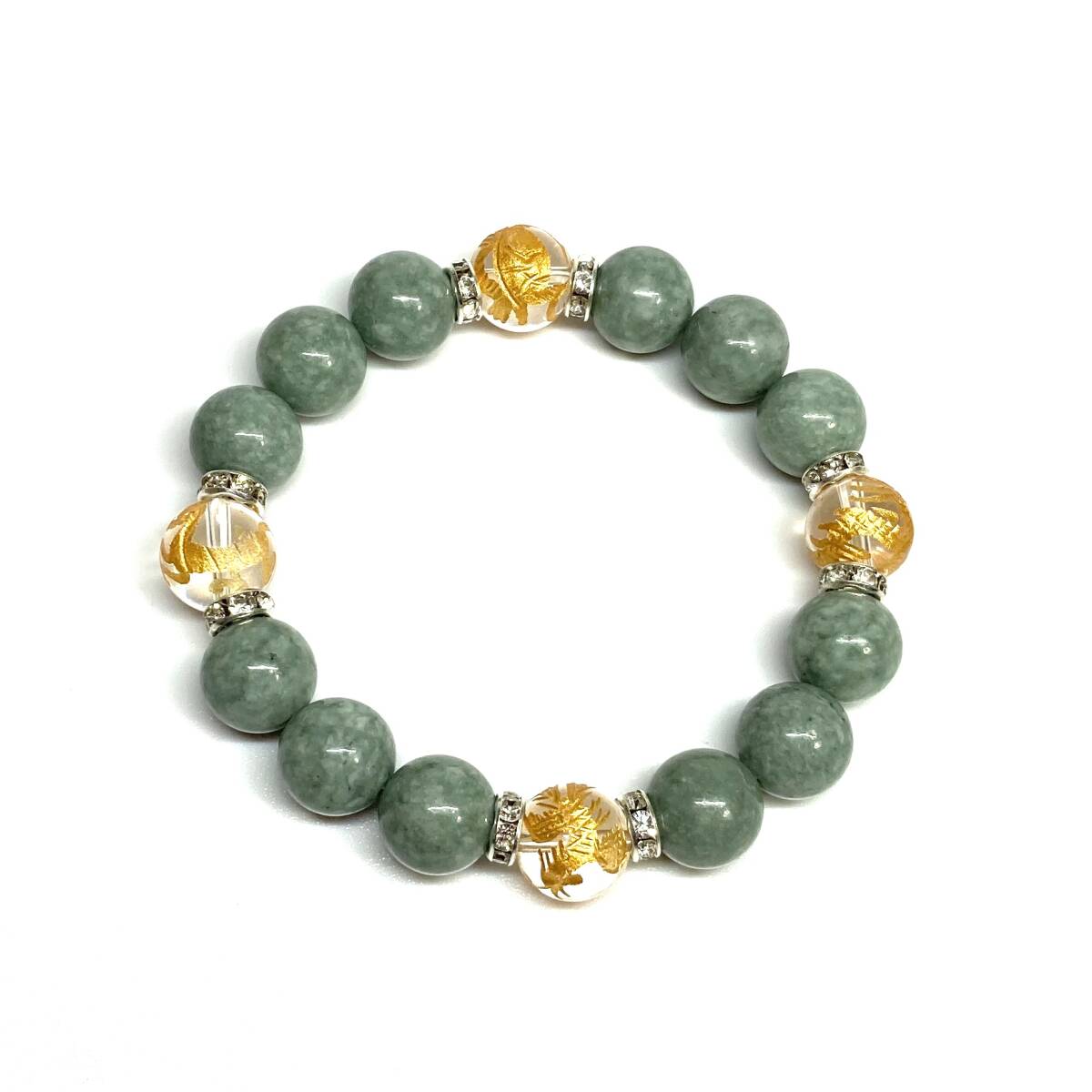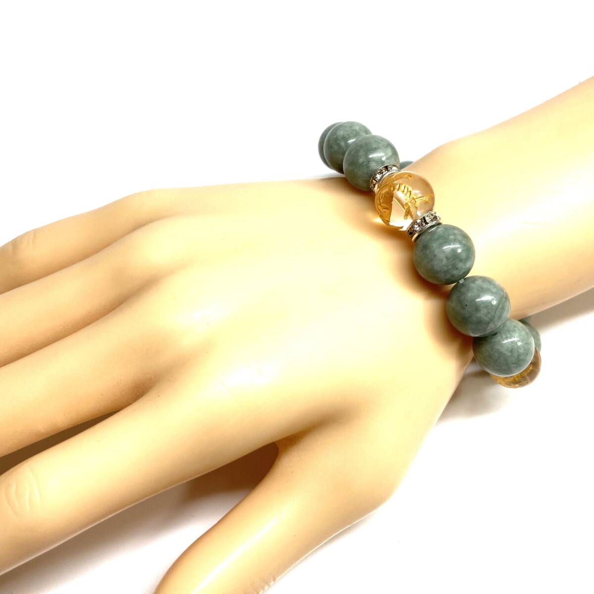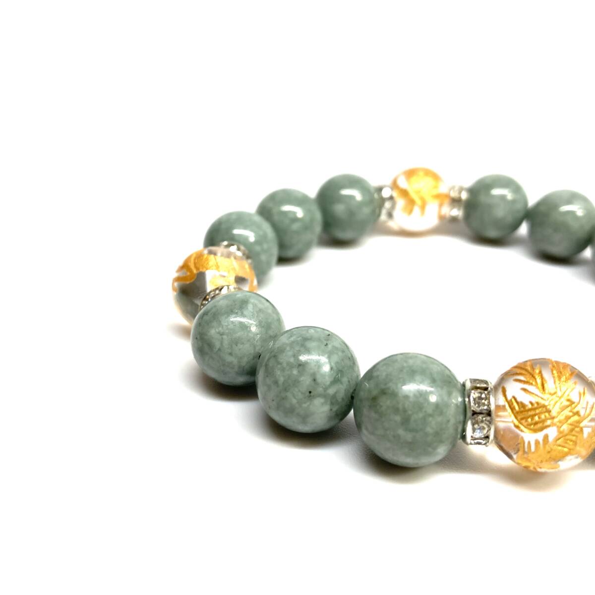 四神獣金彫水晶×ビルマ翡翠 12mm パワーストーン ブレスレット天然石 青龍 白虎 玄武 朱雀 運気上昇 金運 お守り 四神獸 四神相応 S