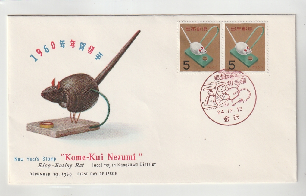 ◆年賀 FDC◆昭和35年 米食いネズミ 横ペア貼