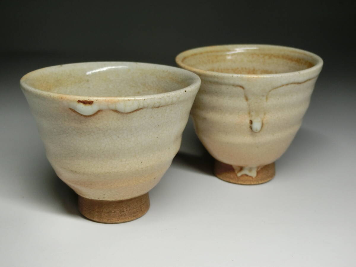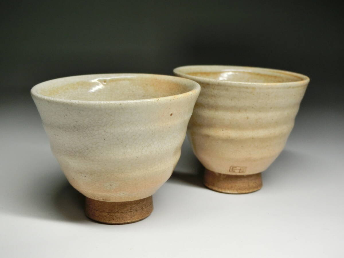 陶印あり 時代 萩焼 煎茶碗 二客
