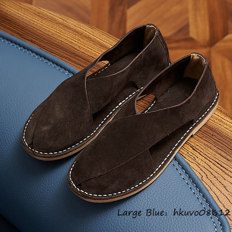超希少■本革 サンダル スエード革 ビジネスシューズ 職人手作り 高級牛革 レザーシューズ ビーチサンダル 革靴 紳士靴 珈琲色 24.5cm