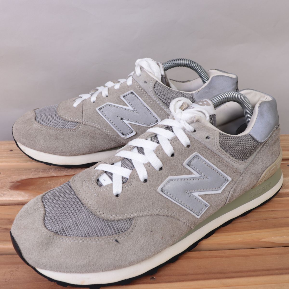 z1041【574】ニューバランス US8.5 26.5cm/灰 グレー 白 ホワイト newbalance メンズ スニーカー 中古