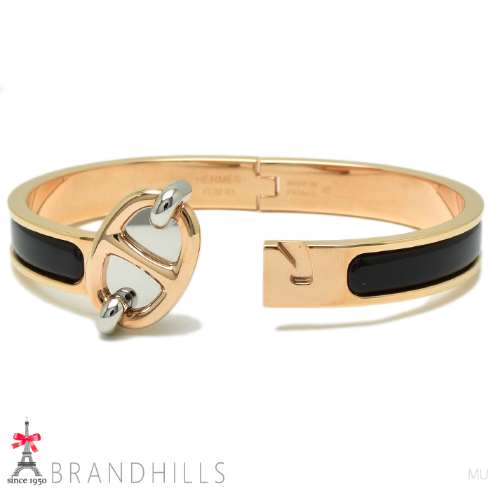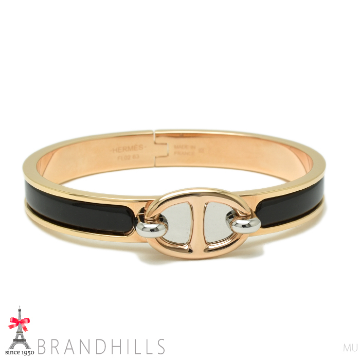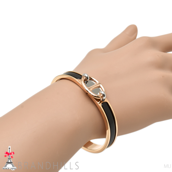商品名エルメス バングル エナメル ブレスレット ミニ クリック シェーヌ ダンクル ピンクGP ブラック