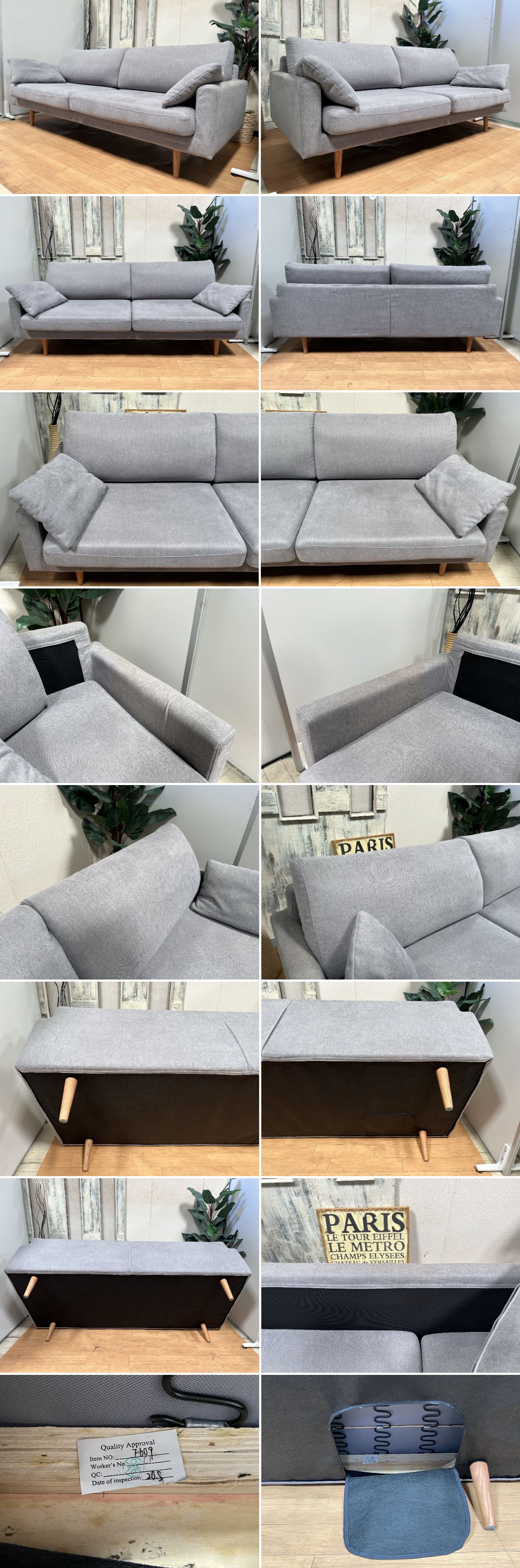 ◎ゆったり◎【ソファ トリプルソファ 3人掛けソファ クッション付 リビング シンプル モダン ファブリック 幅195cm グレー】N08025
