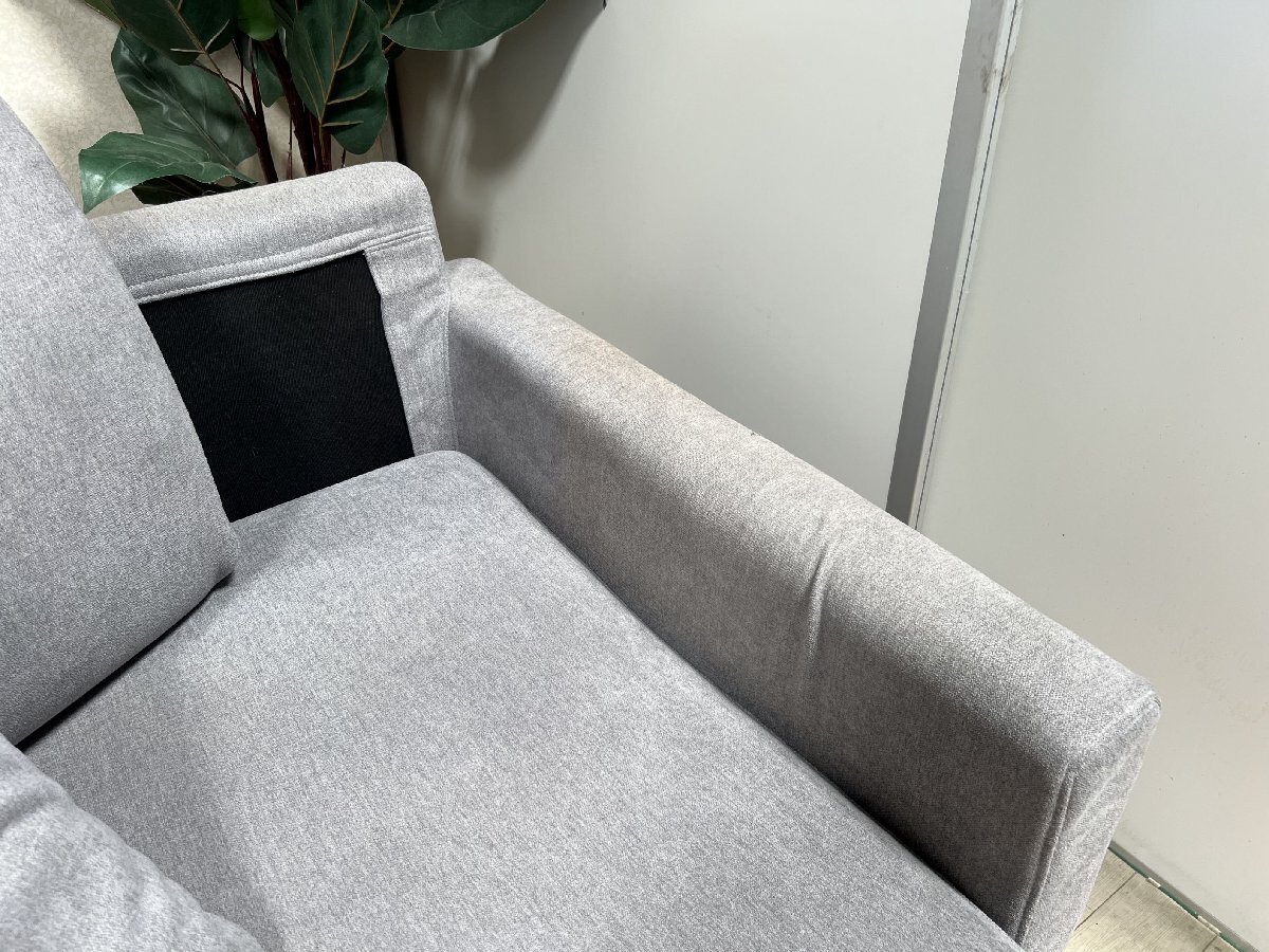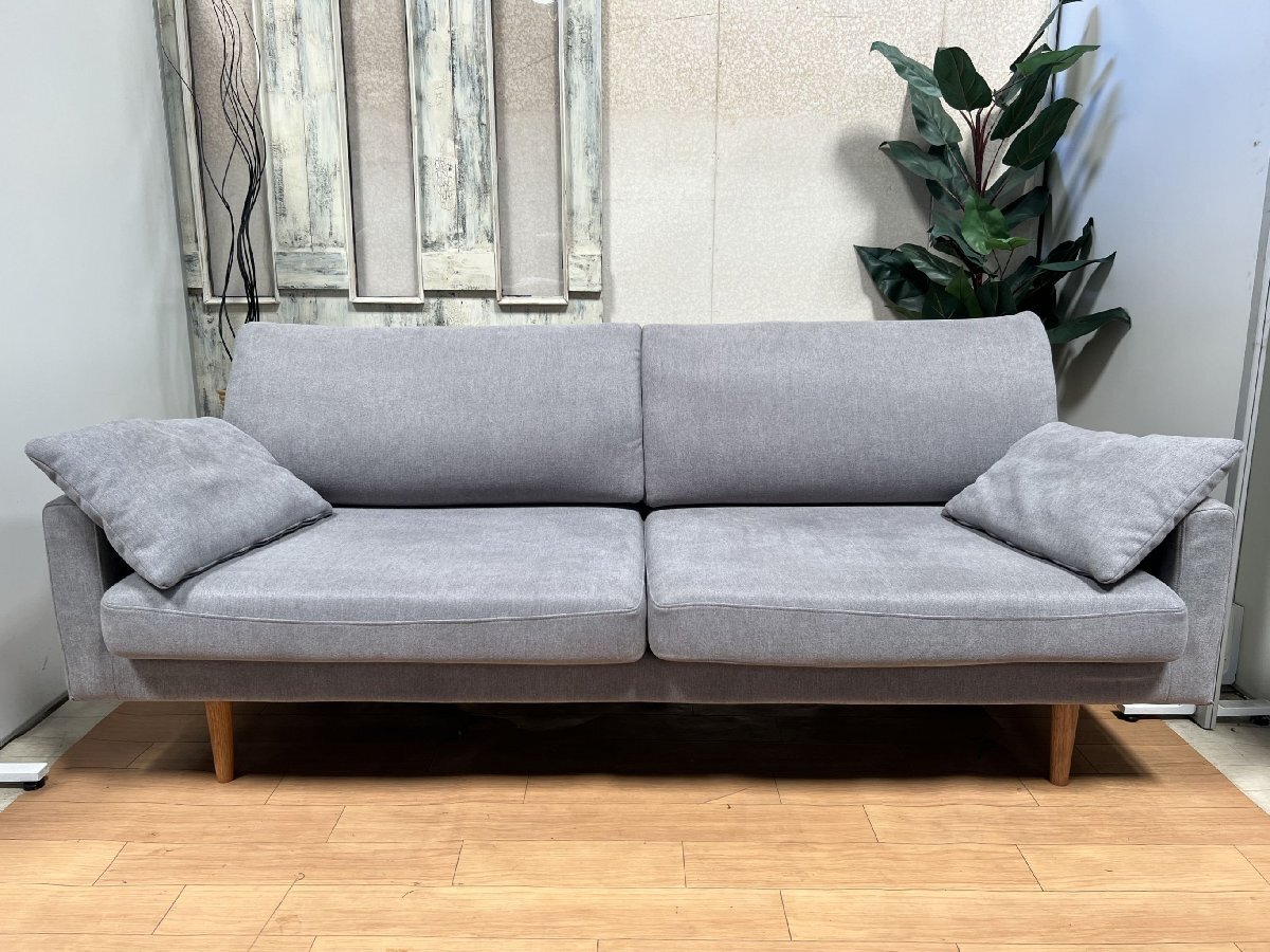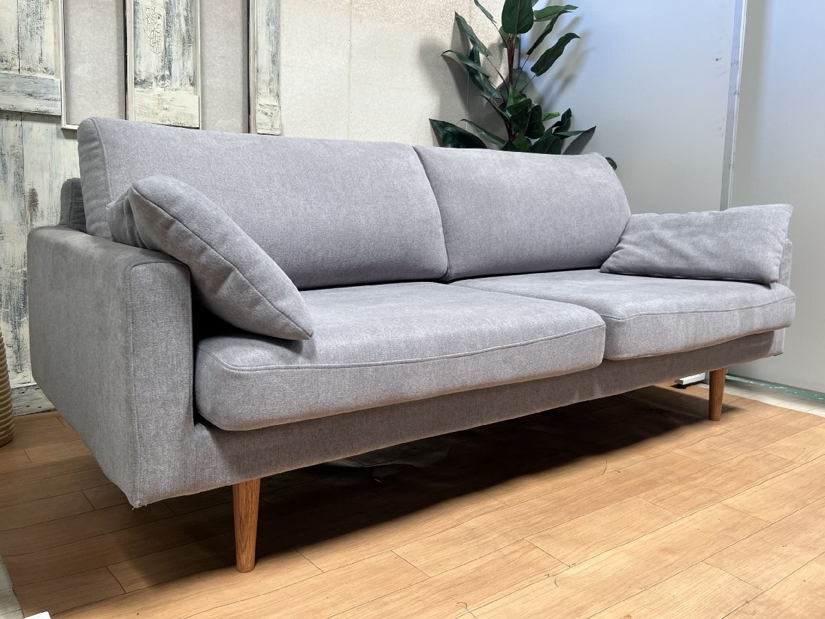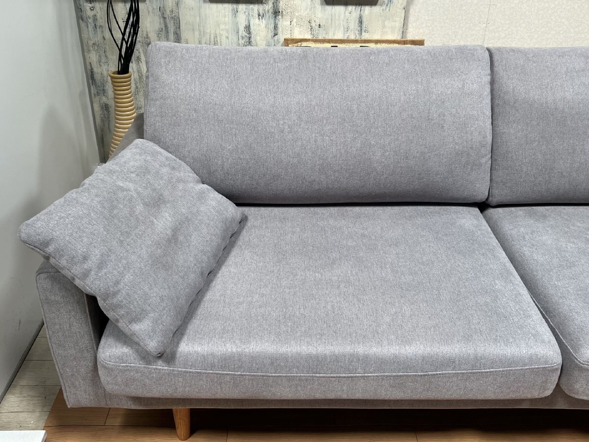 落ち着いたグレーカラーで、どんなインテリアにも自然と馴染む上品な雰囲気。クッション2個付き、座面や背もたれのクッション性も確りしており、ゆったりとした座り心地が魅力です。