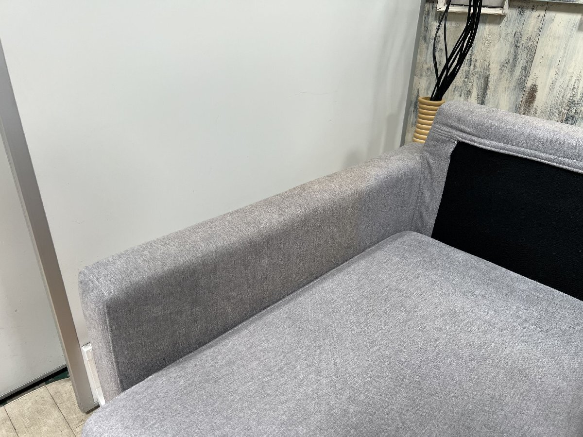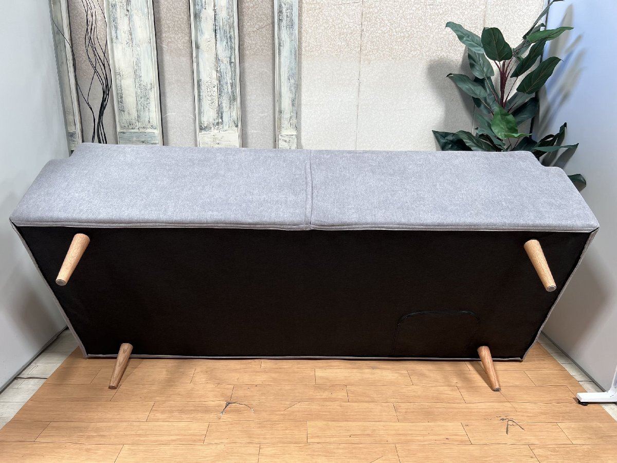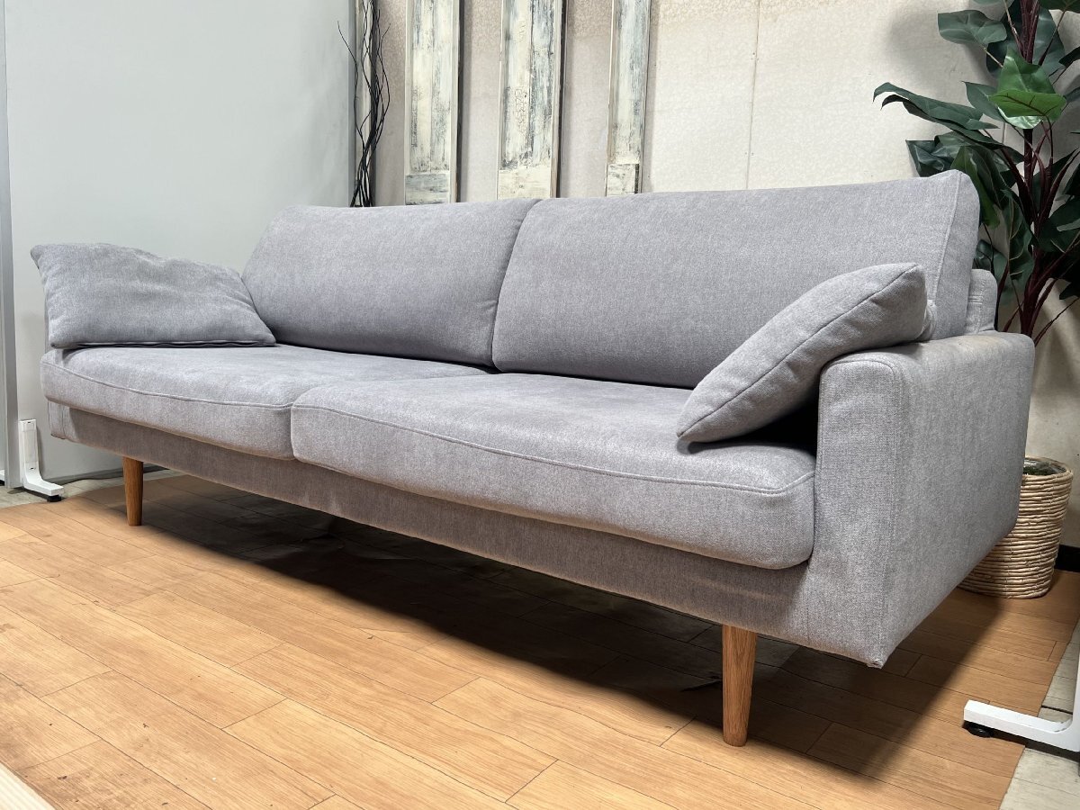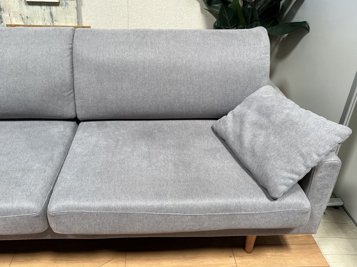 落ち着いたグレーカラーで、どんなインテリアにも自然と馴染む上品な雰囲気。クッション2個付き、座面や背もたれのクッション性も確りしており、ゆったりとした座り心地が魅力です。