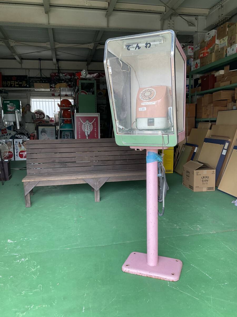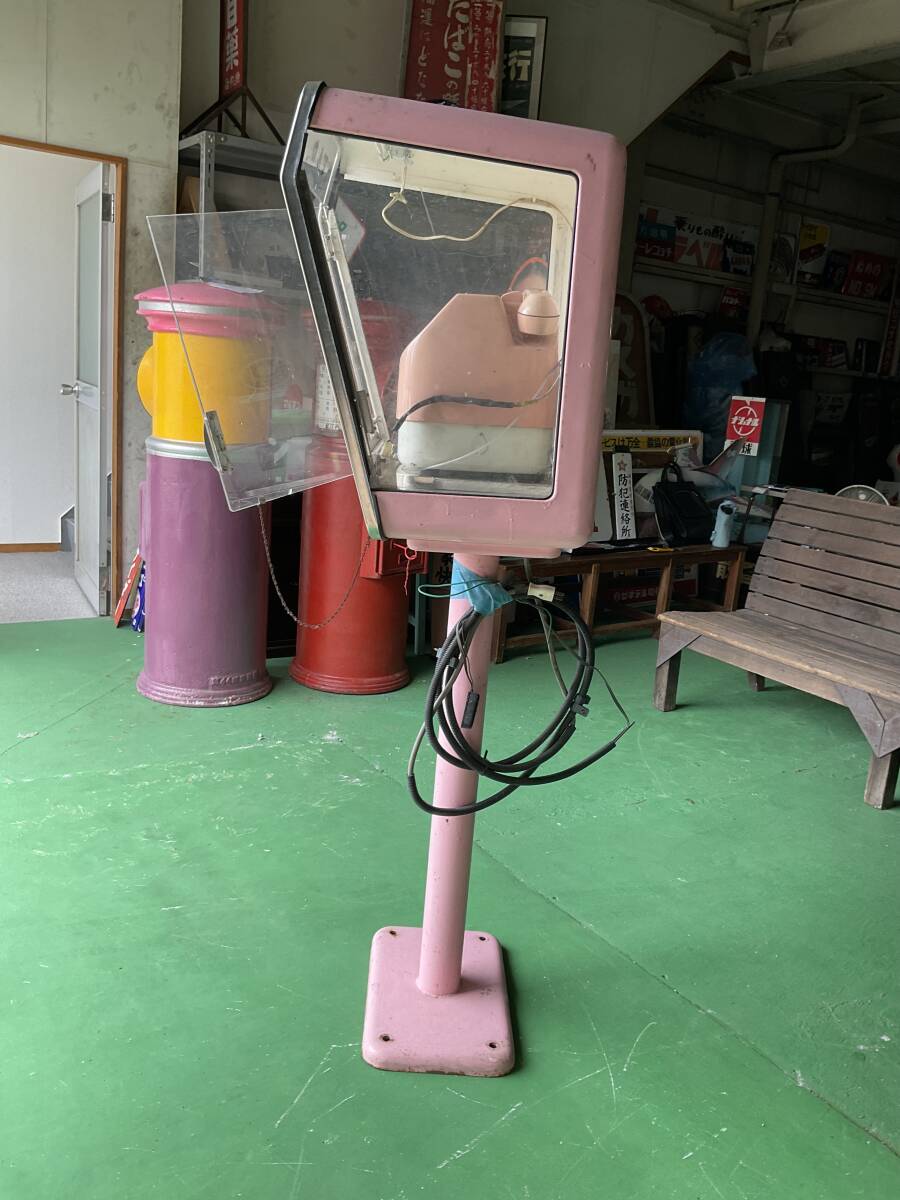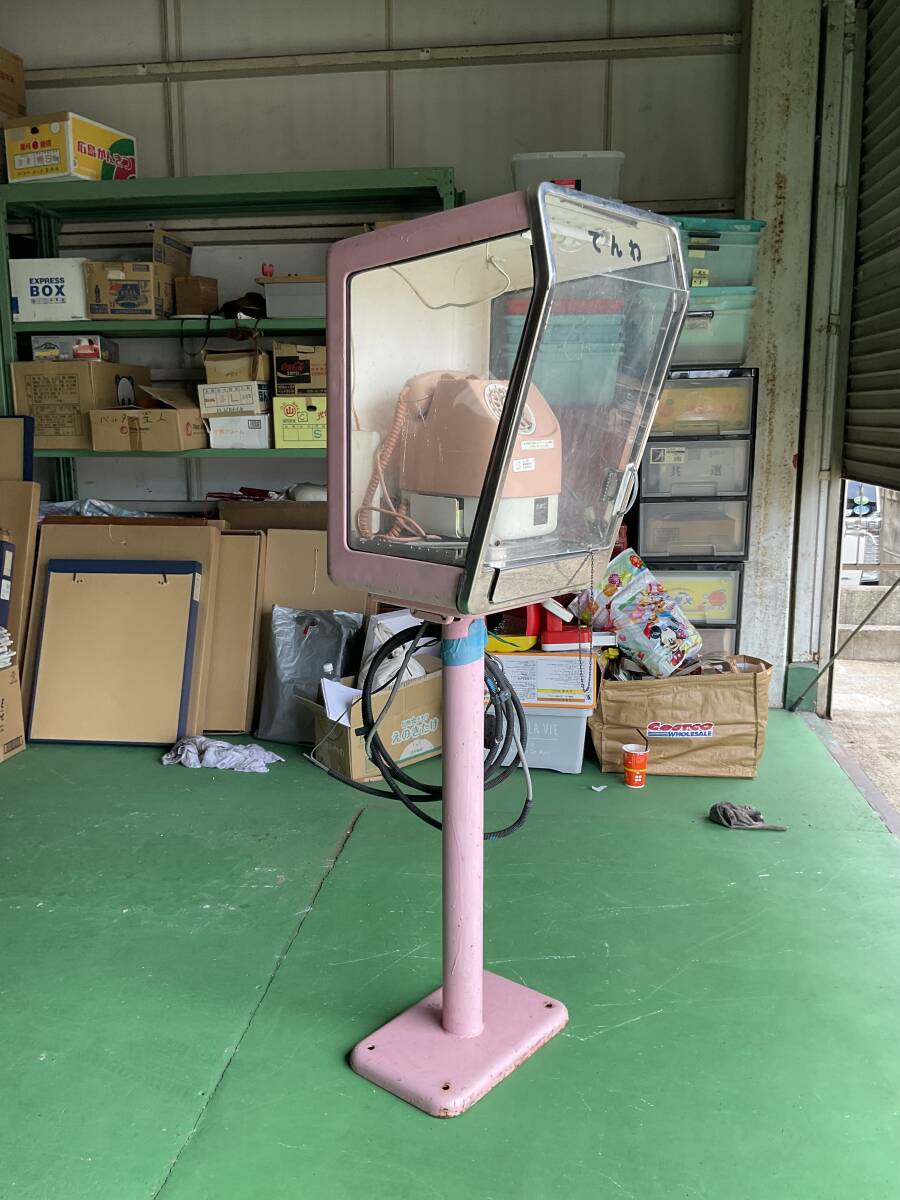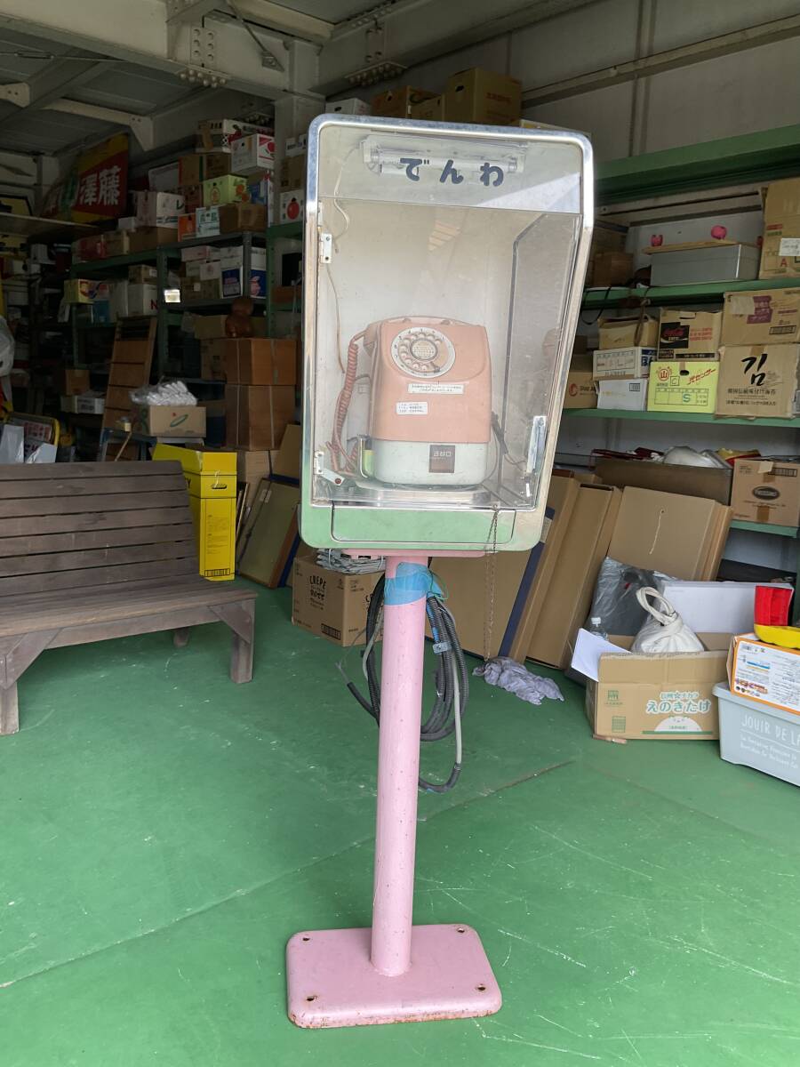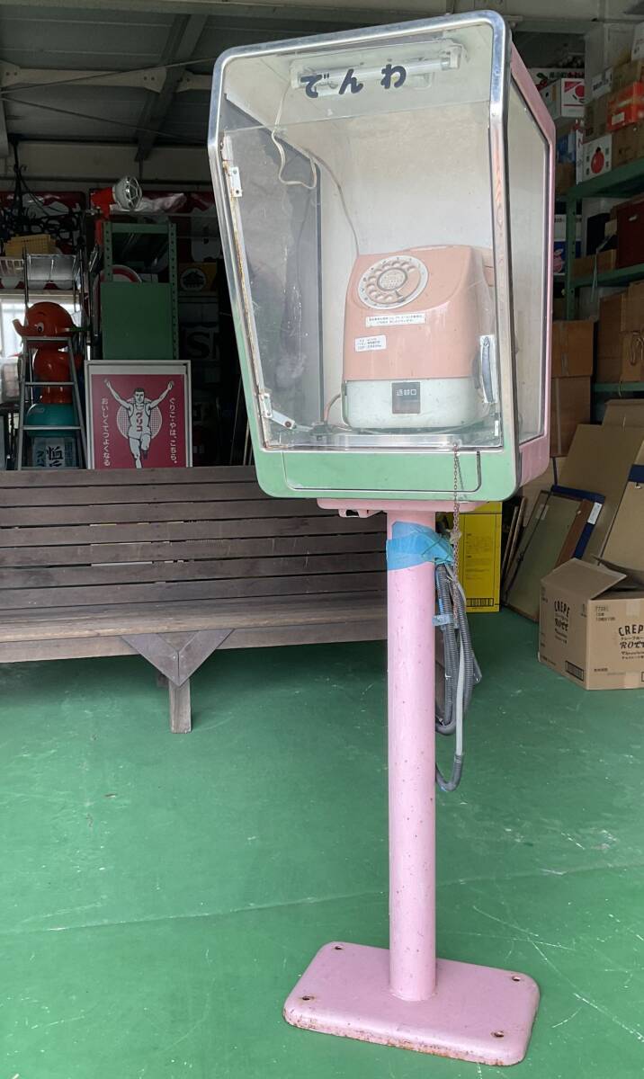 即決送料込み【昭和レトロ百貨店】ピンク公衆電話 電話台 セット 自立式 電話スタンド ビンテージ 当時物 街並み 電話ボックス キャビネット
