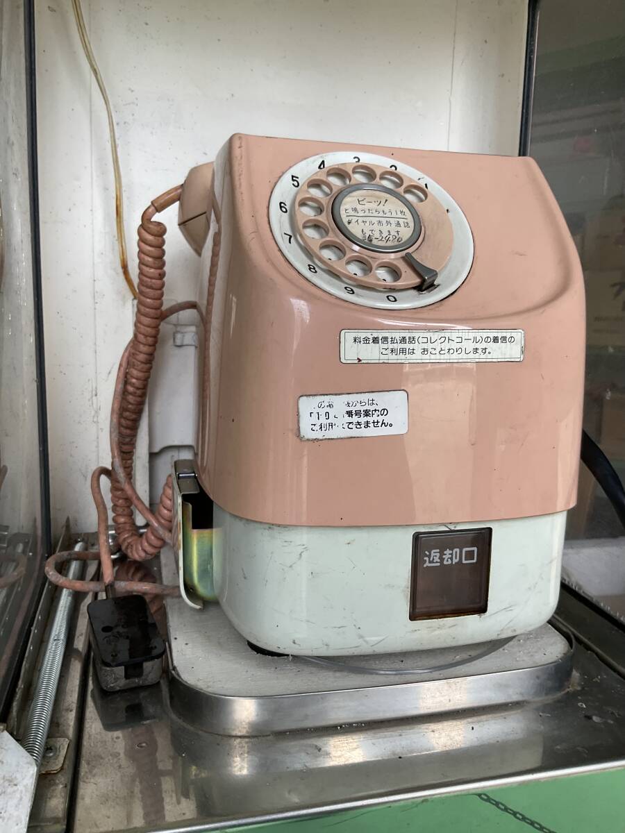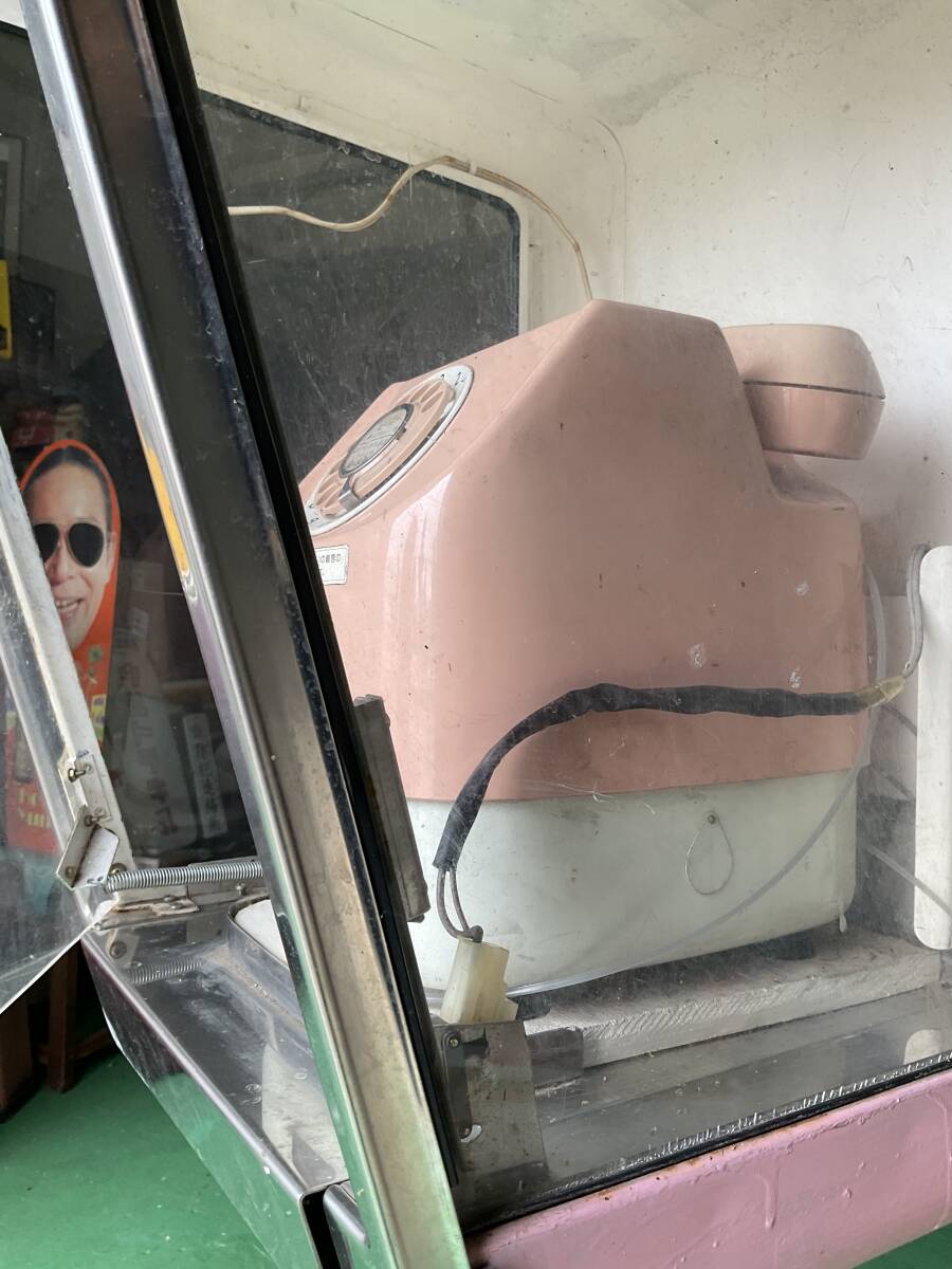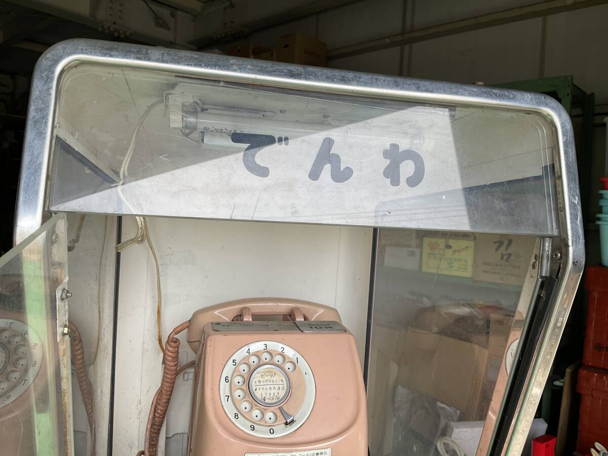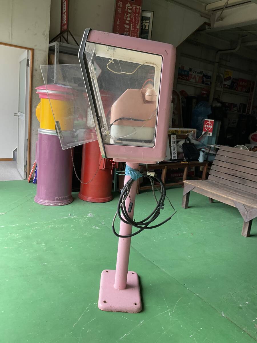 即決送料込み【昭和レトロ百貨店】ピンク公衆電話 電話台 セット 自立式 電話スタンド ビンテージ 当時物 街並み 電話ボックス キャビネット