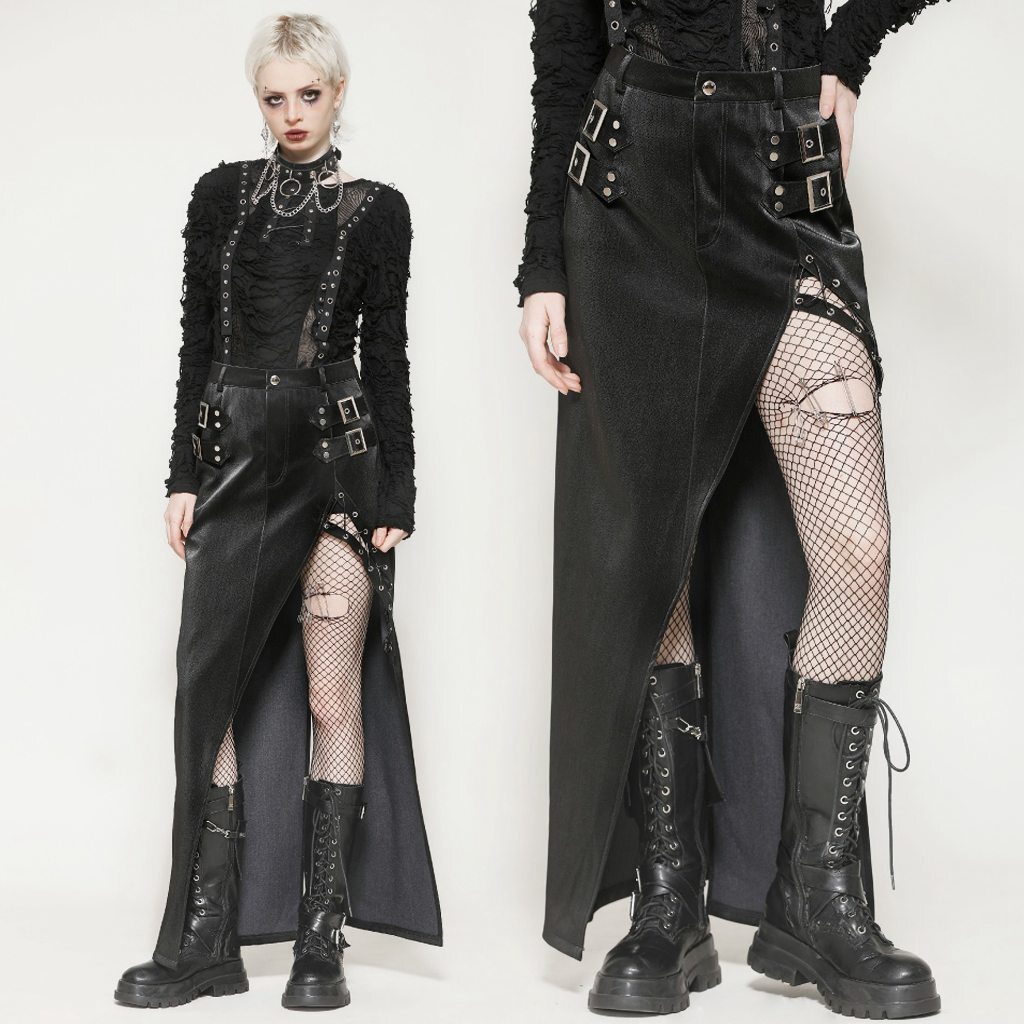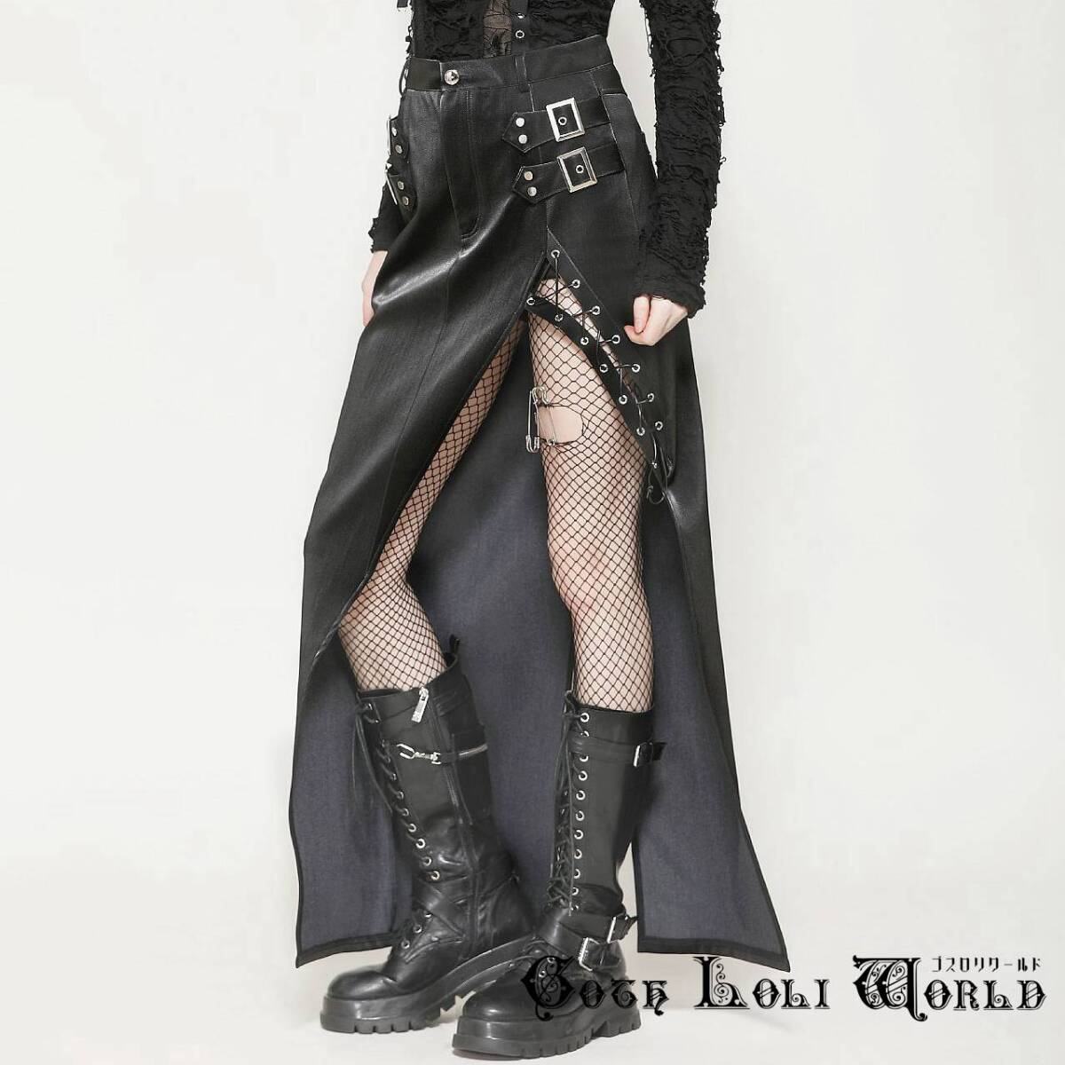 即納 KW370-M パンク ロック ファッション スプリット ロングスカート ゴシック ゴスロリ V系 モード系 地雷系 個性的 ライブ衣装