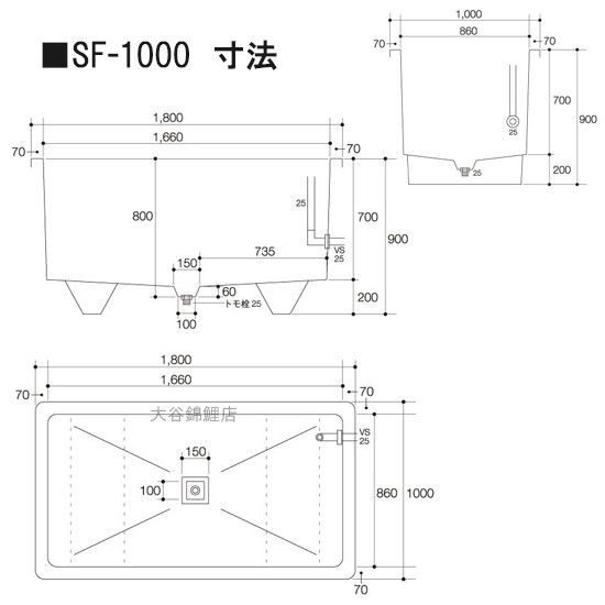 排水 | 25A 船底型状のセンター オーバーフロー 25A |