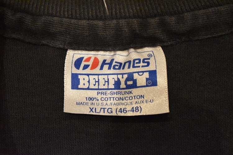 グッドプリント◎USA製90sビンテージHanesヘインズボディ半袖U2ポケット両面プリントTシャツXLブラック黒100綿アメカジ バンド t915