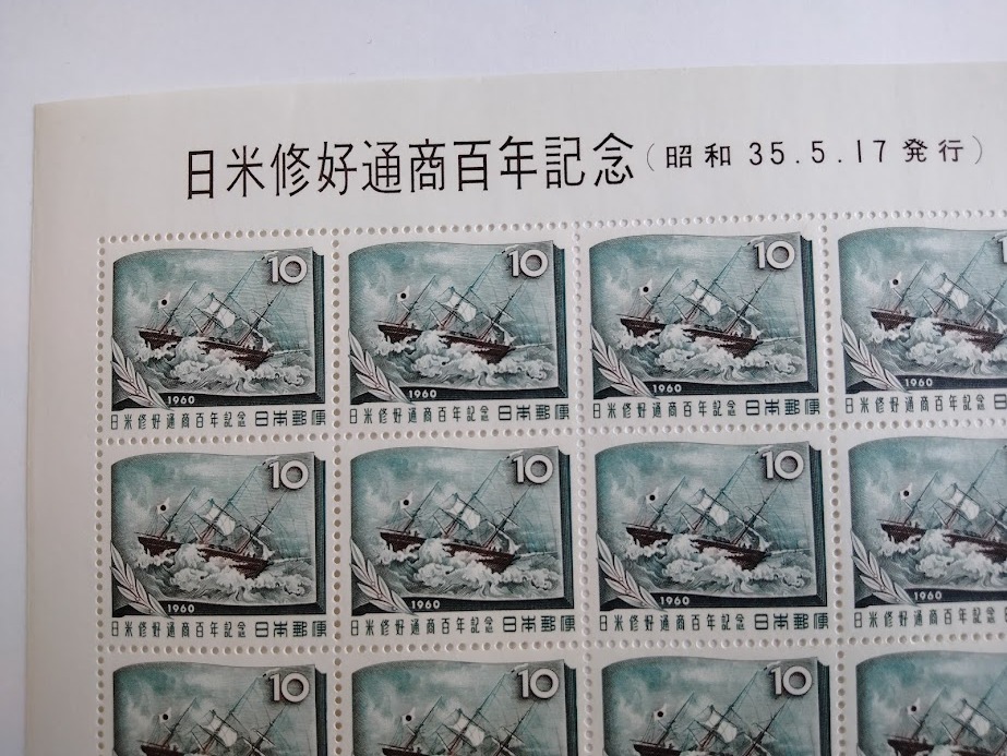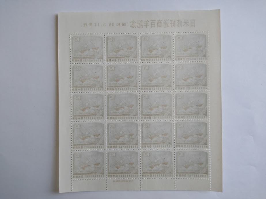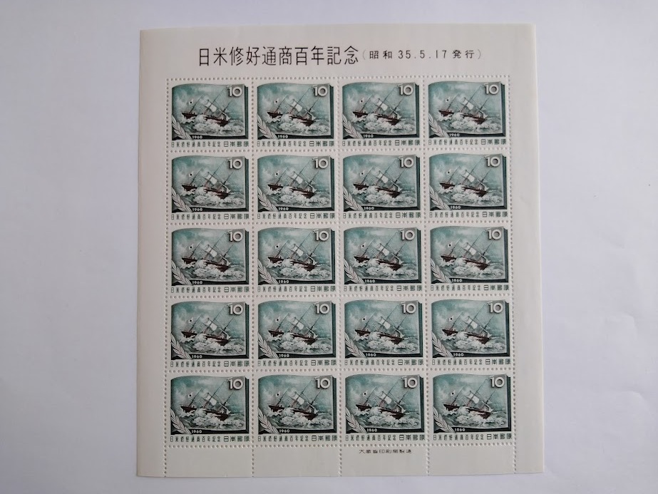 切手 【日米修好通商百年記念 咸臨丸 10円切手 × 1シート 未使用品】