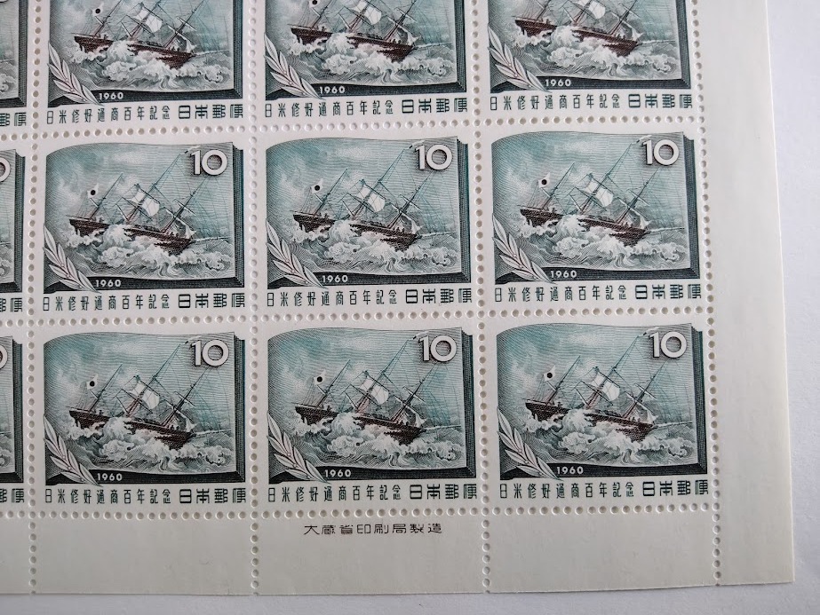 切手 【日米修好通商百年記念 咸臨丸 10円切手 × 1シート 未使用品】