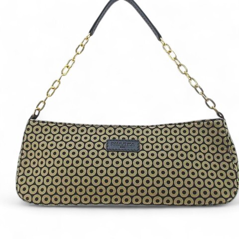 ポールカ PAULE KA ワンショルダーバッグ セミショルダー チェーン ドット柄 バイカラー ベージュ キャンバス レザー レディース