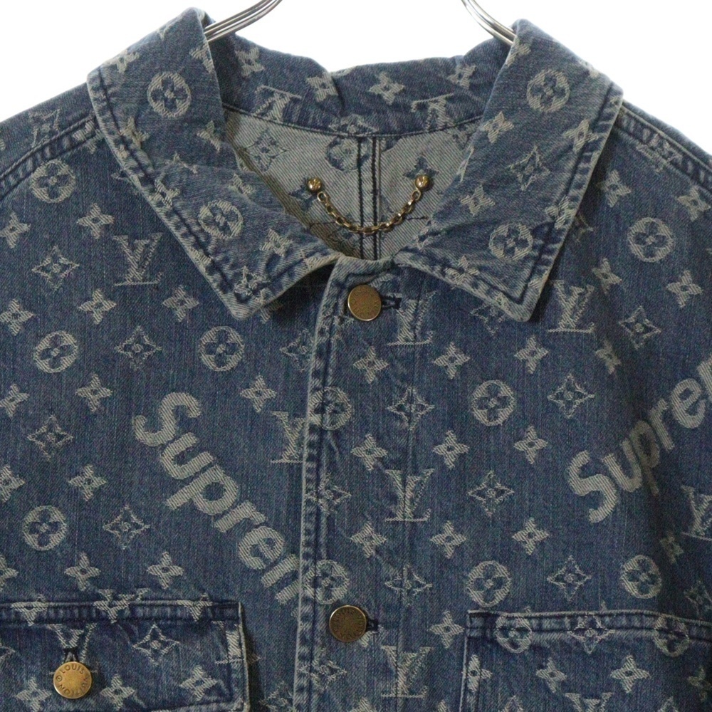 SUPREME シュプリーム 17AW ×LOUIS VUITTON Jacquard Denim Trucker Jacket ジャガードデニムトラッカージャケット HDA91WALL インディゴ