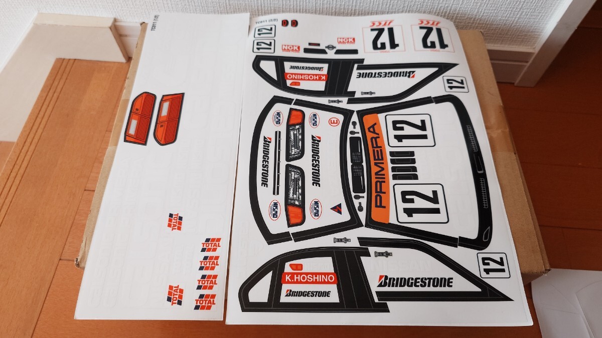 五枚目の画像左側のステッカーですが、ステッカー色が白の為に画像では伝わらないですが、CALSONIC、NISSAN、NISMO、TOTAL、CALSONICPRIMERA、リアテールランプのステッカー一式になります。