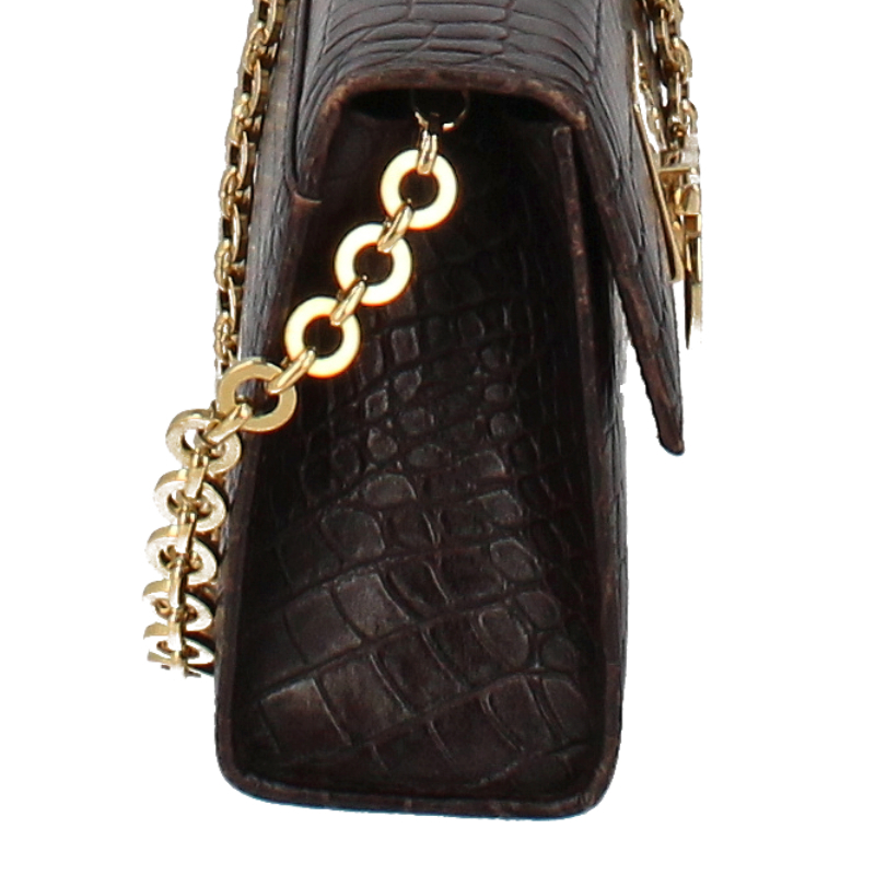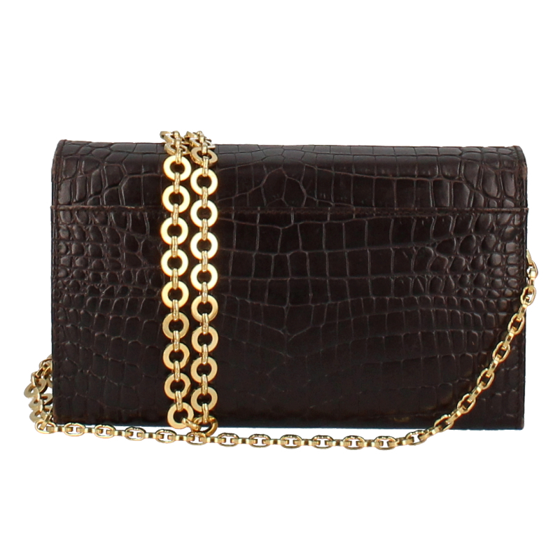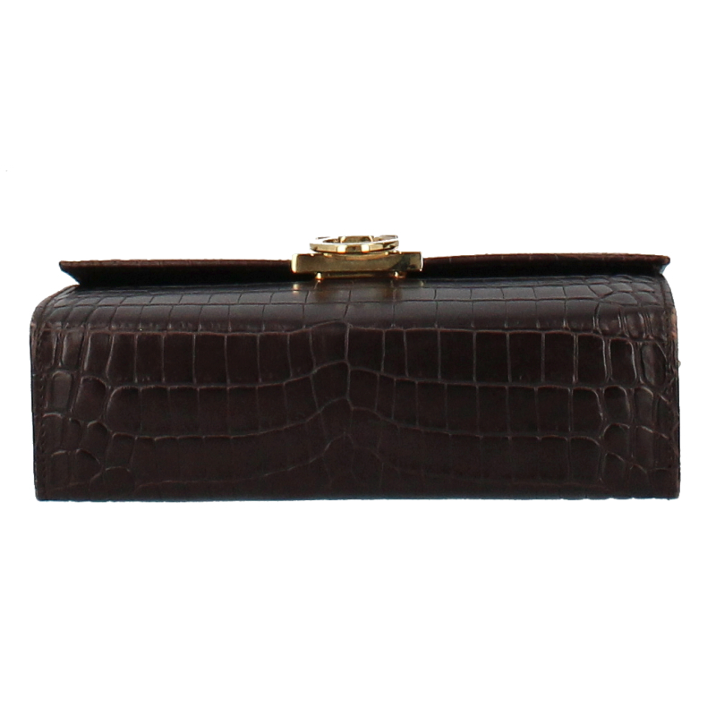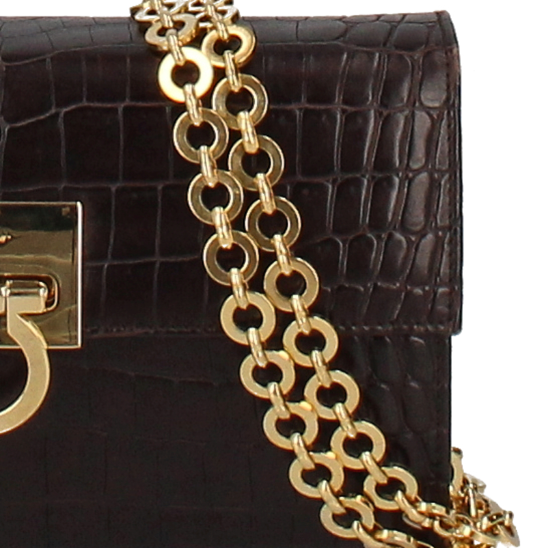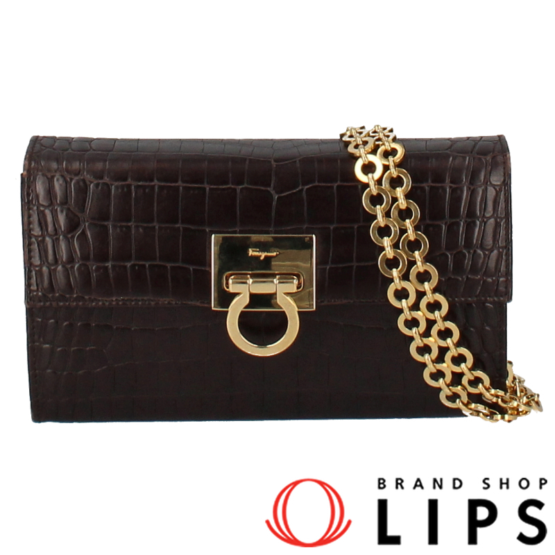 フェラガモ ガンチーニ チェーンショルダーバッグ AQ-21 9629 型押しレザー レディース ショルダーバッグ ブラウン 美