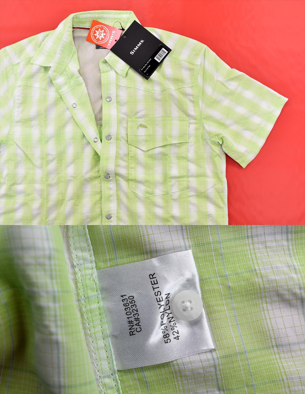 送料無料4★Simms★シムス Big Sky 半袖シャツ size:S キーライム プレイド