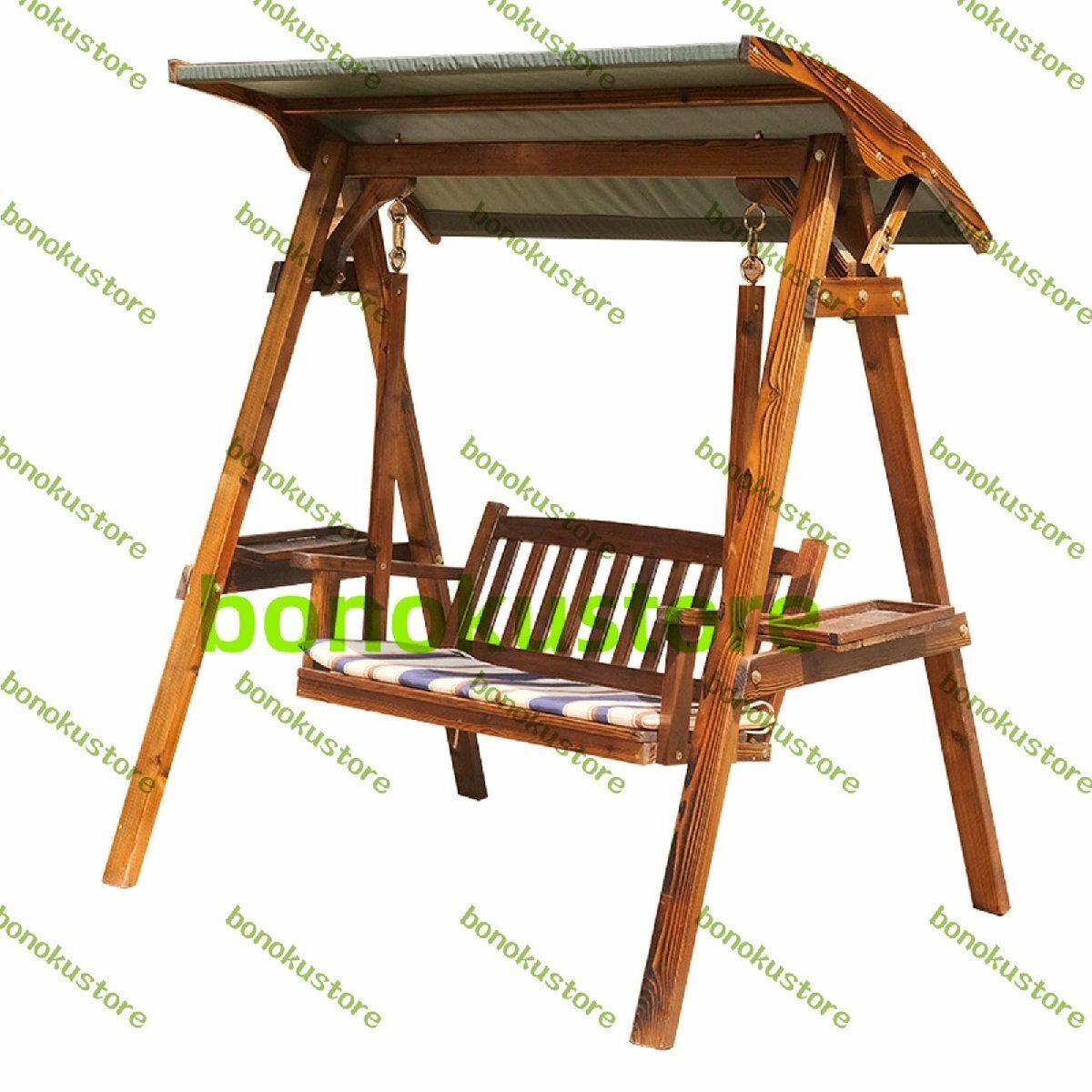 ぶらんこ 屋外 ポーチブランコ 2人掛け木製ポーチスイング 調節可能なキャノピー アームレスト サイドテーブル2つ付き 耐荷重600ポンド