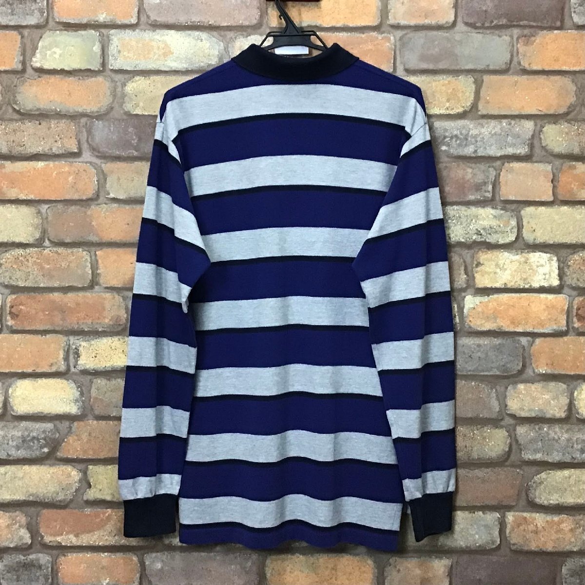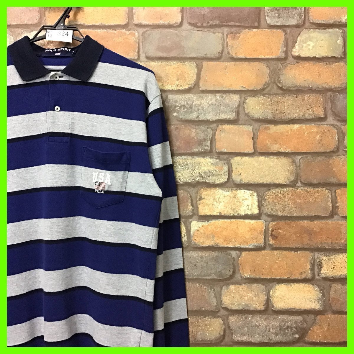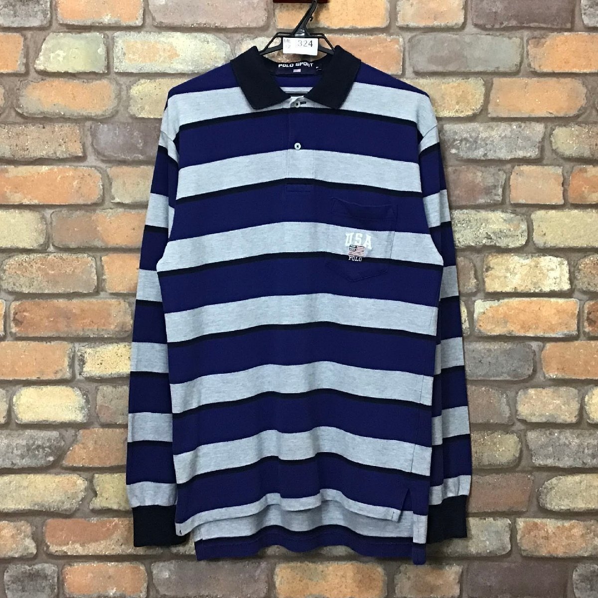 ME12-324★USA古着★90's VINTAGE★【POLO SPORTS ラルフローレン】刺繍ロゴ ボーダー ポロシャツ【メンズ M】紺×グレー 長袖 アメカジ
