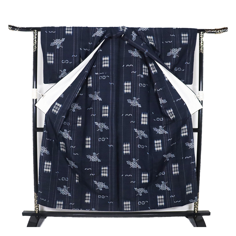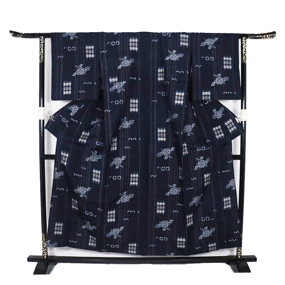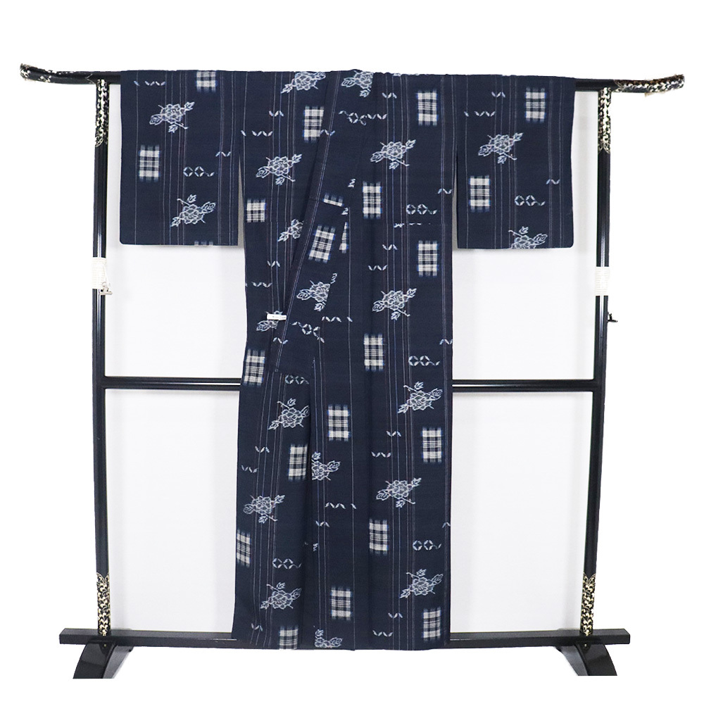 | 単衣 紬 濃紺地 牡丹・格子・七宝 160 広襟 | |