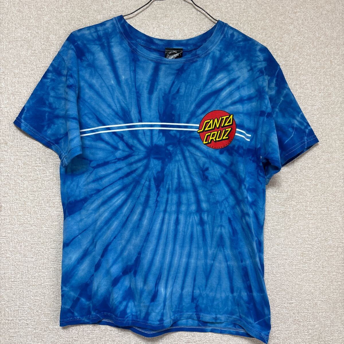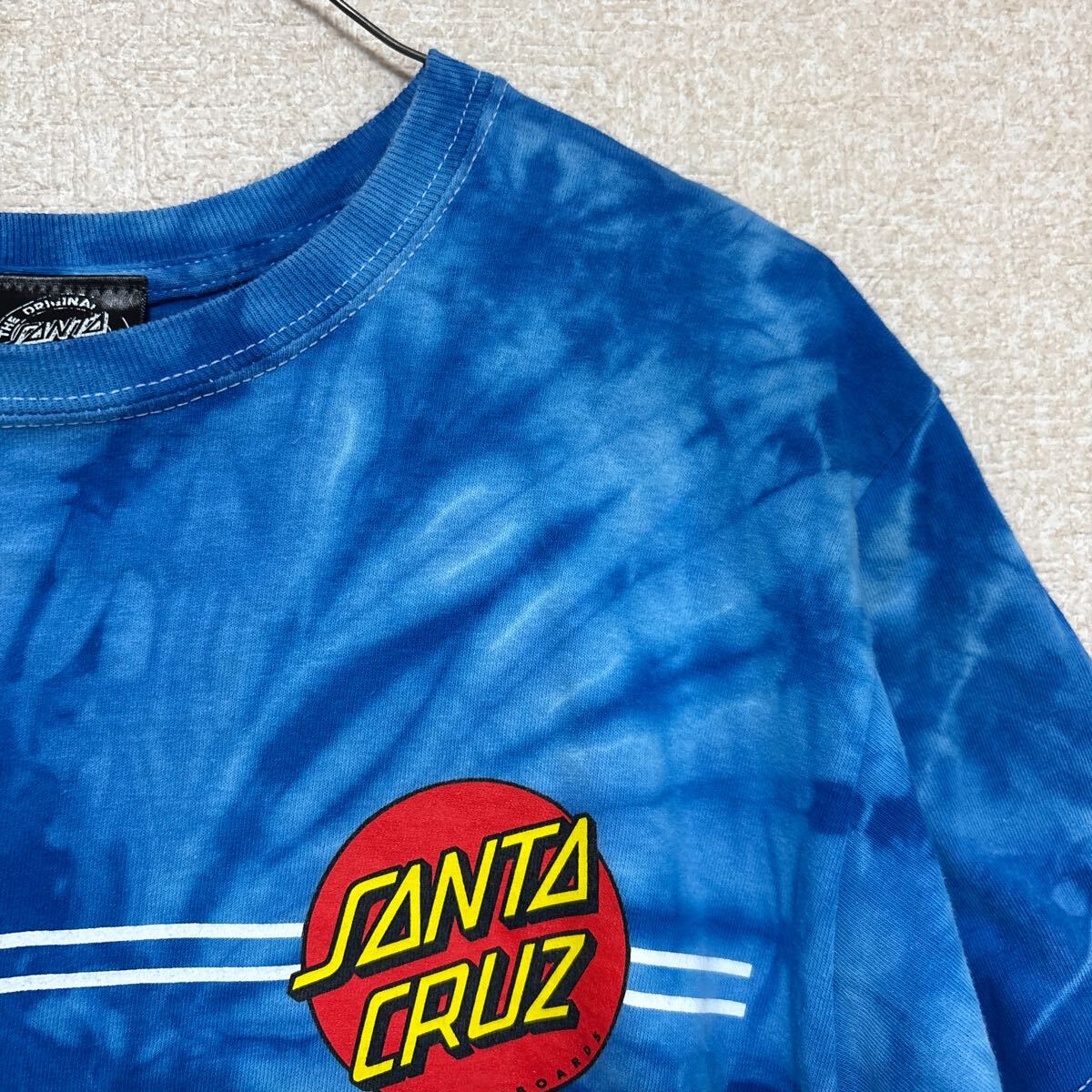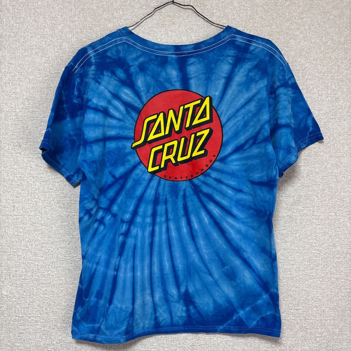 【希少】 サンタクルーズ 半袖Tシャツ ブルー タイダイ染めがきれい SANTA CRUZ YOUTH Lサイズ メンズMサイズ相当です。