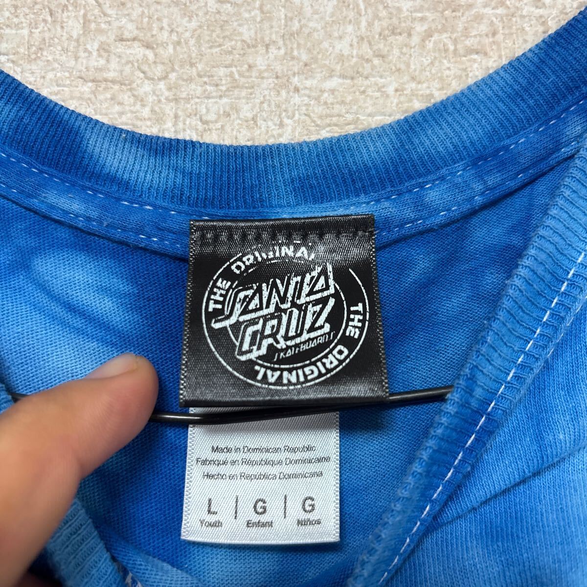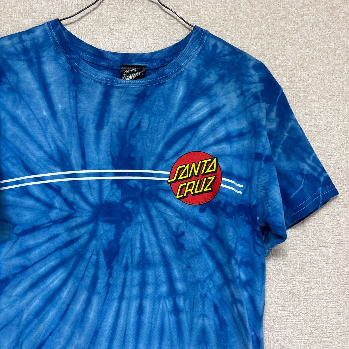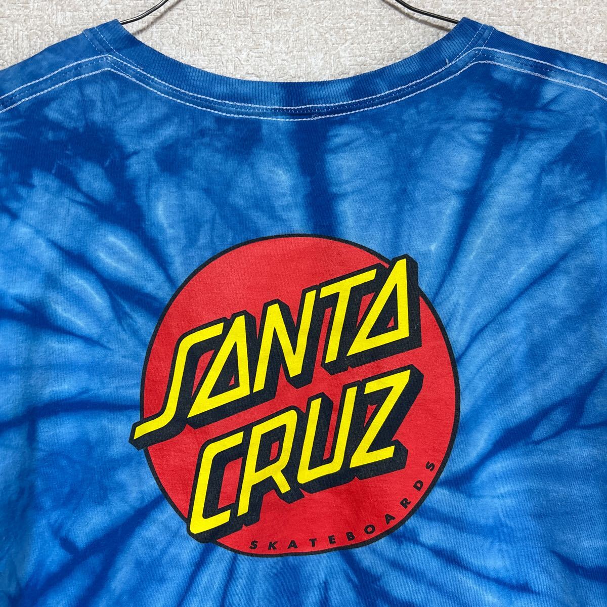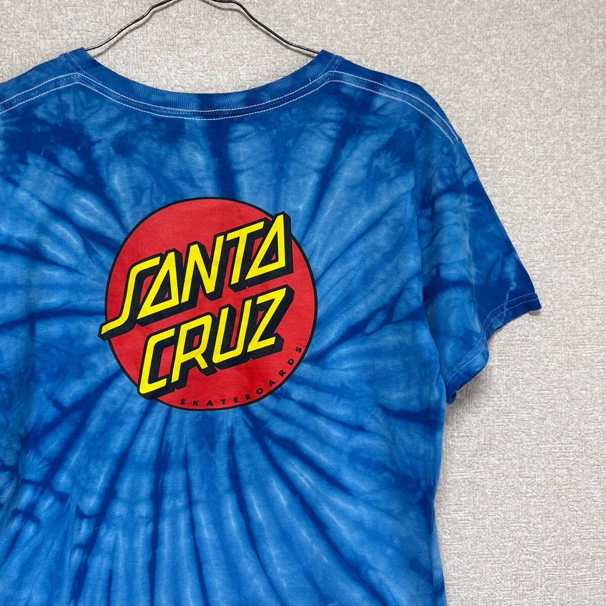 【希少】 サンタクルーズ 半袖Tシャツ ブルー タイダイ染めがきれい SANTA CRUZ YOUTH Lサイズ メンズMサイズ相当です。