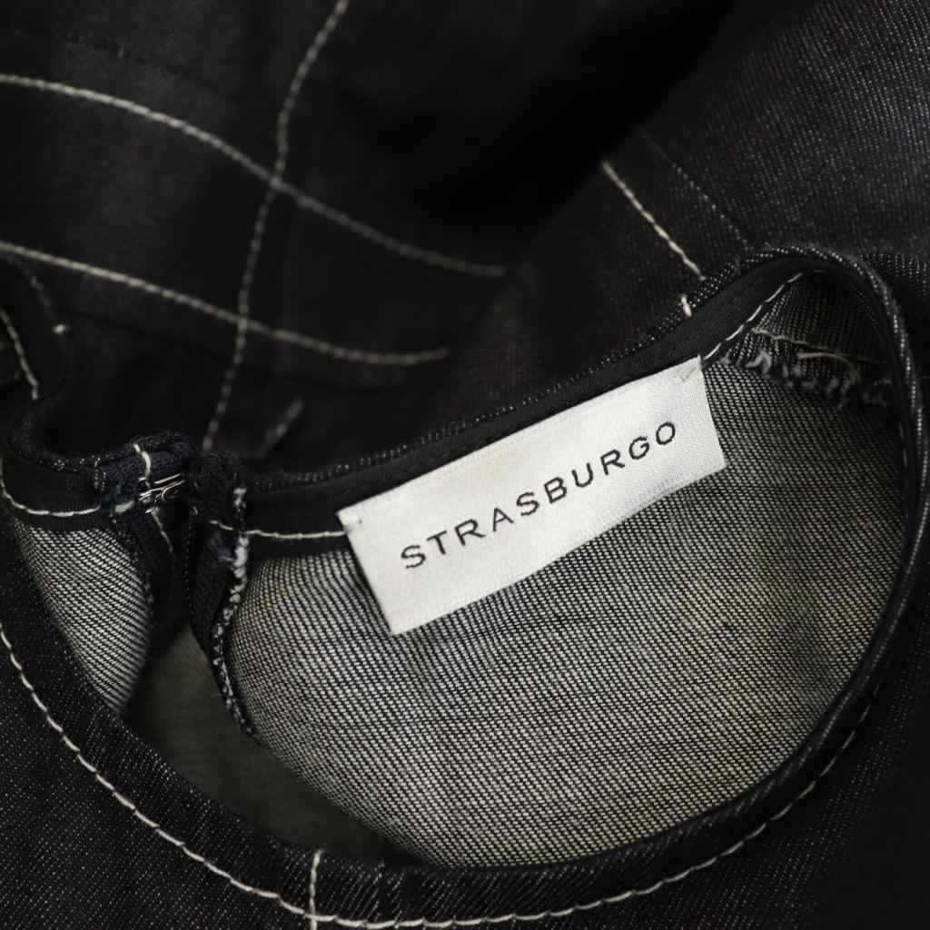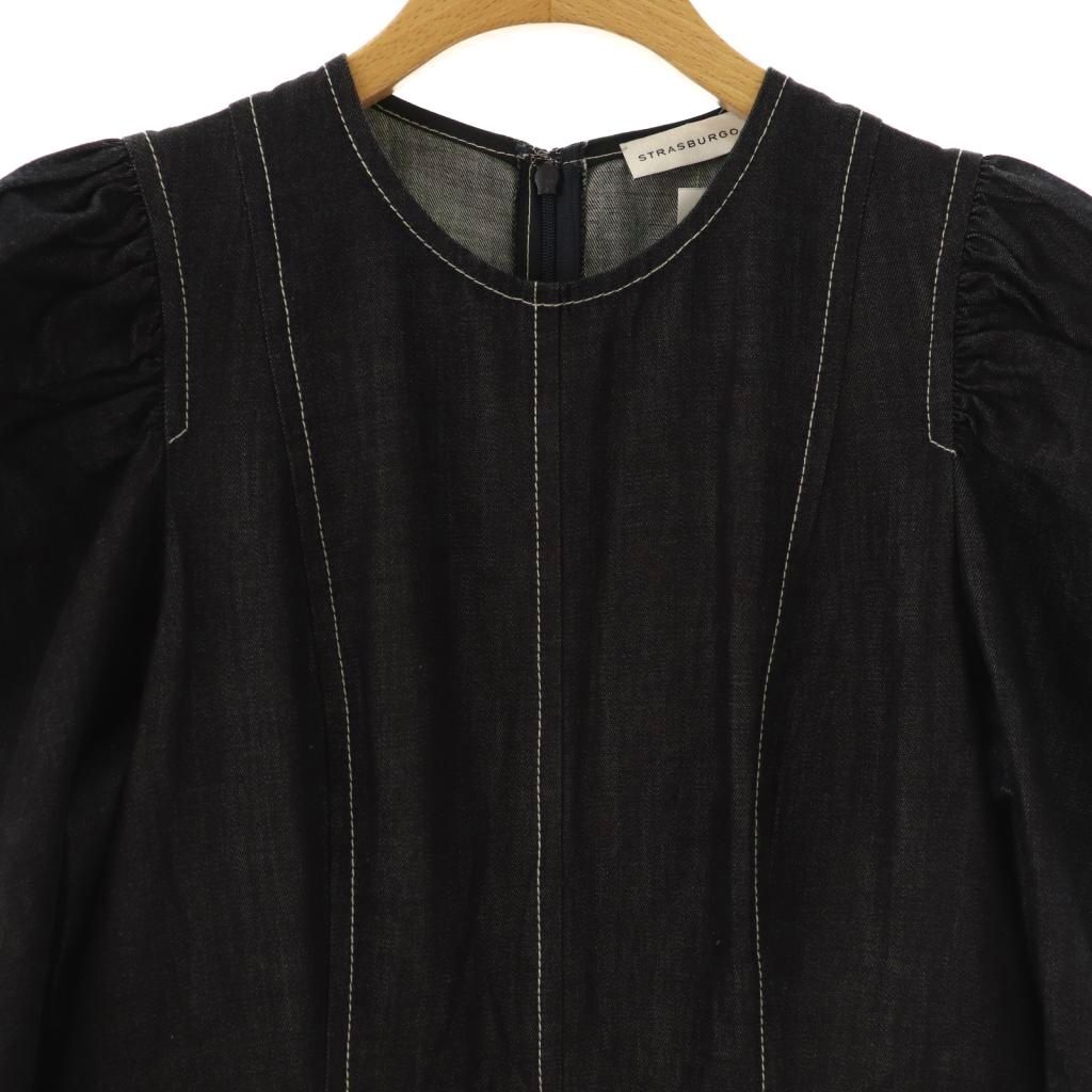 ストラスブルゴ STRASBURGO パワーショルダー デニムオールインワン 五分袖 36 インディゴ /HK ■OS レディース