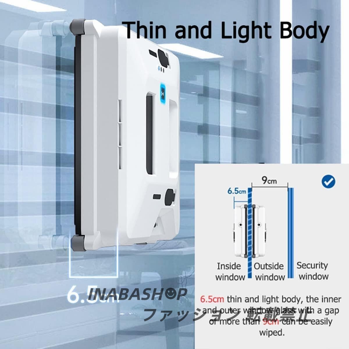 【小型で操作簡単】6.5cmの超薄型ボディ、ガードレールまたは盗難防止窓とガラスの間の距離は9cm以上で、電動窓クリーナーは妨げられずに移動できます。また、窓掃除ロボットにはボタン 1 つで開始できるリモコンが付いているため、より多くの時間を節約できます。