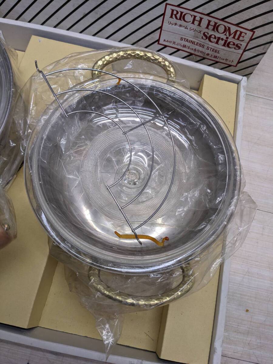 送料無料S97010 RICH HOME series リッチホームシリーズ あみ付天ぷら鍋 18cm 卓上鍋21cm セット 未使用