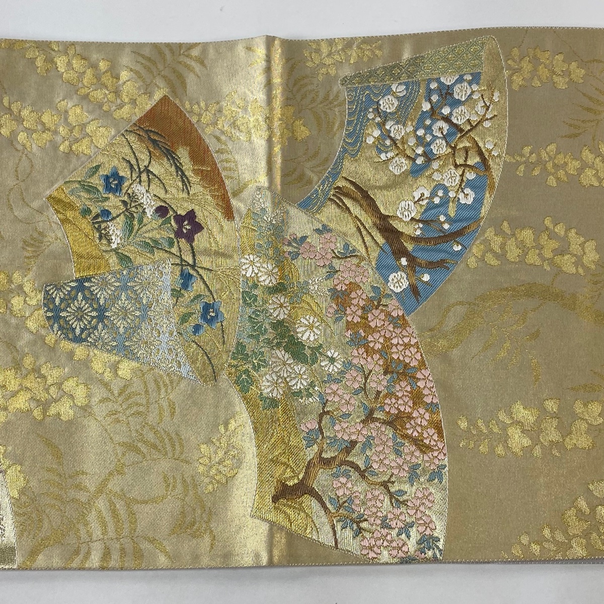 | 袋帯 秀品 扇面 秋草 金糸 箔 金色 六通 正絹 【中古】 |