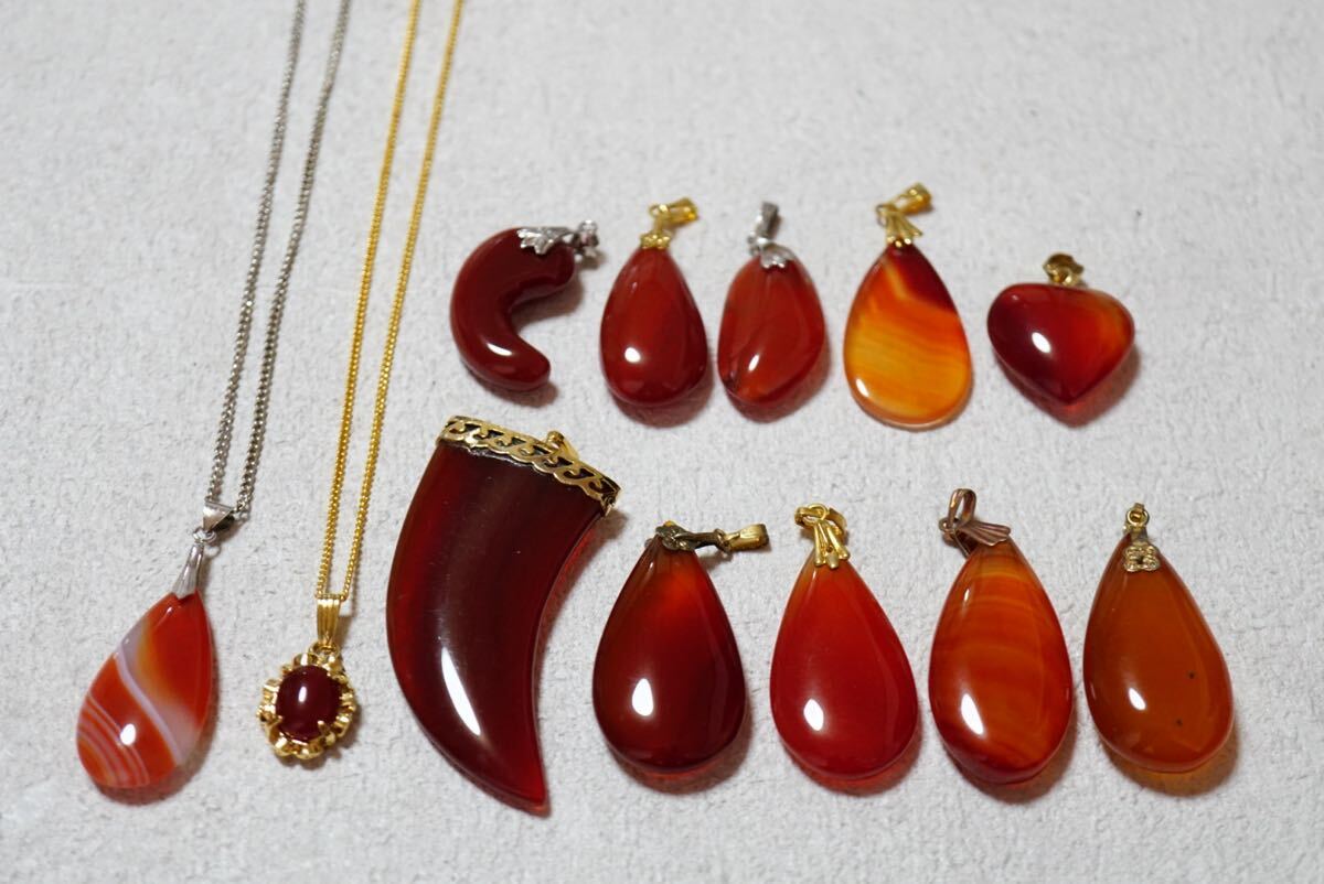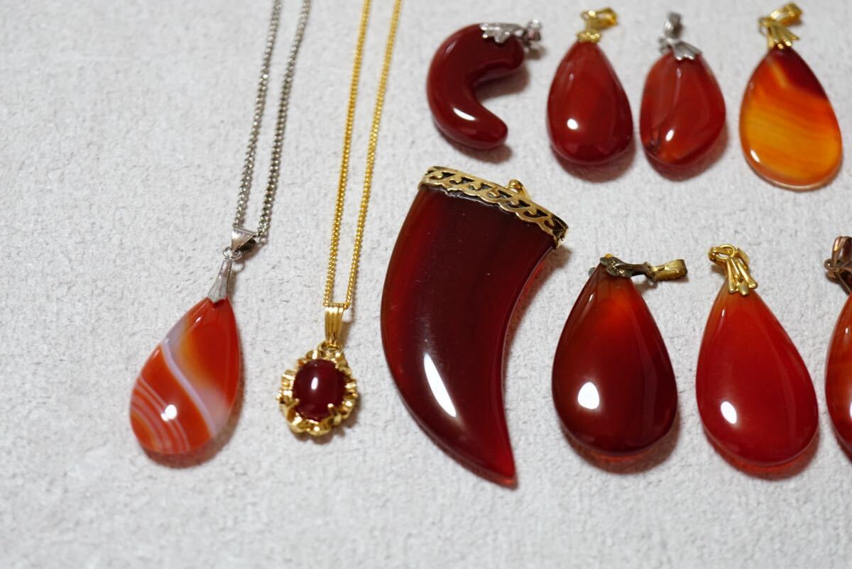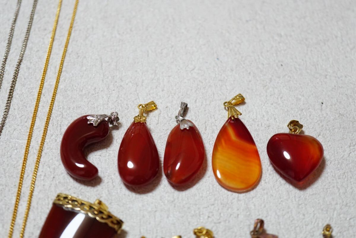 C2246 カーネリアン 瑪瑙 カラーストーン ネックレス ペンダント 12点 ヴィンテージ アクセサリー 大量 まとめて おまとめ まとめ売り