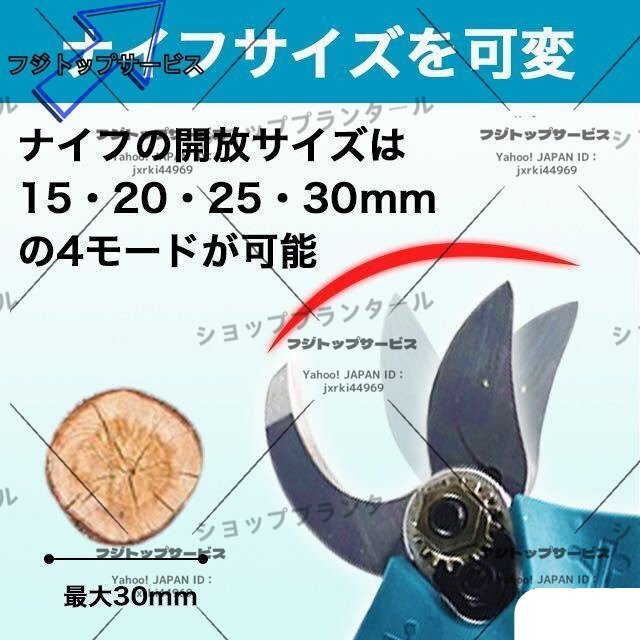 剪定直径4段変更可能、最大切断枝直径30mm,最小切断枝直径10mm。直径30 mm以内の木の枝は簡単に剪断できます。