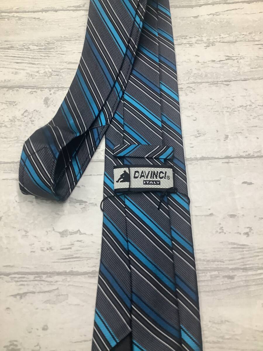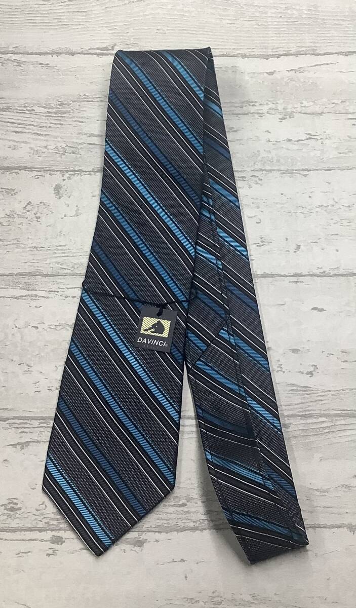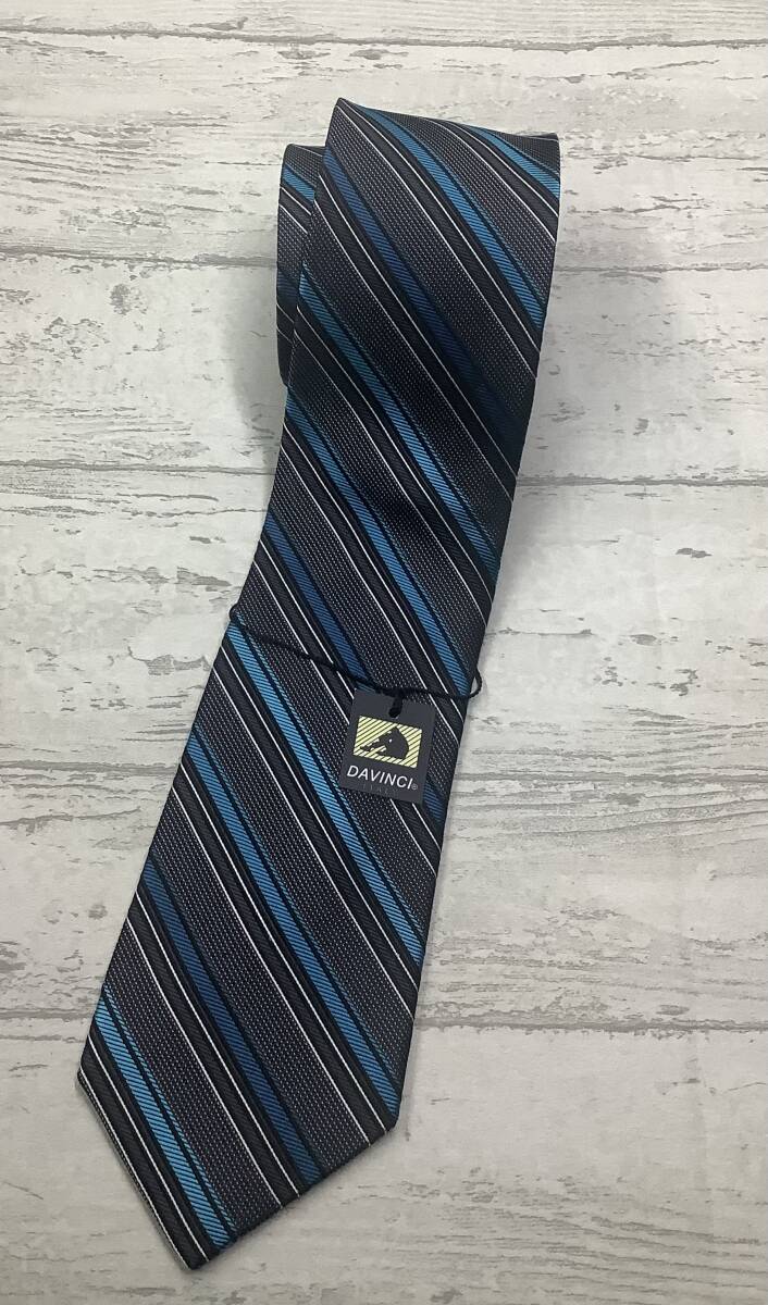 新品未使用★DAVINCI ダヴィンチ シルク100%ネクタイ お洒落 グレーベースにエメラルドグリーンライン 逆ストライプ★