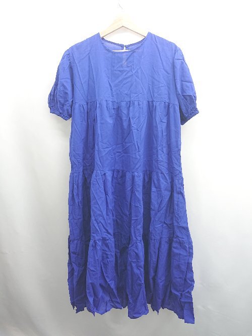 ◇ ⊂ merlot メルロー ティアード 半袖 膝下丈 ワンピース サイズFREE ブルー レディース E