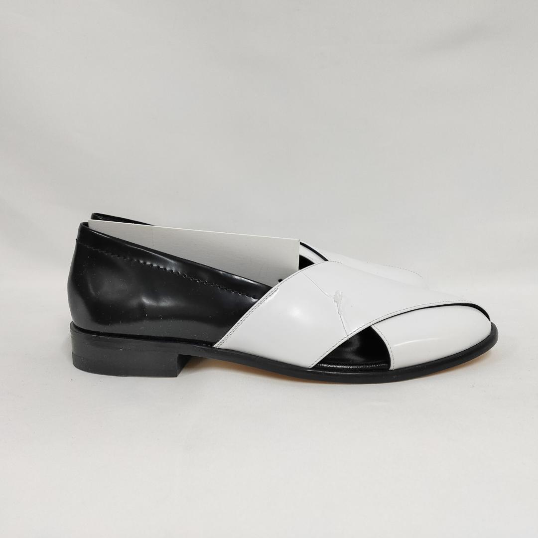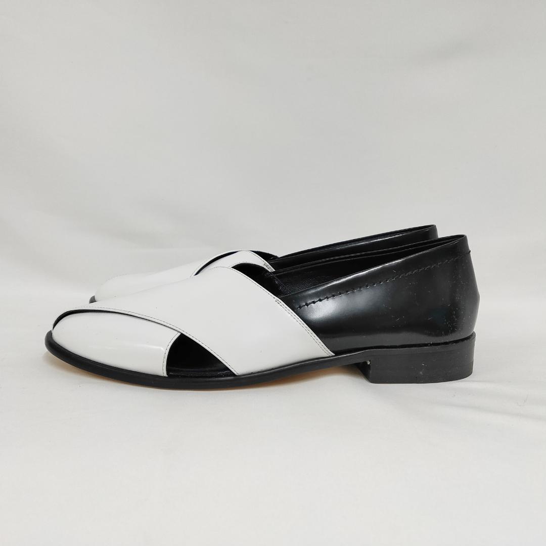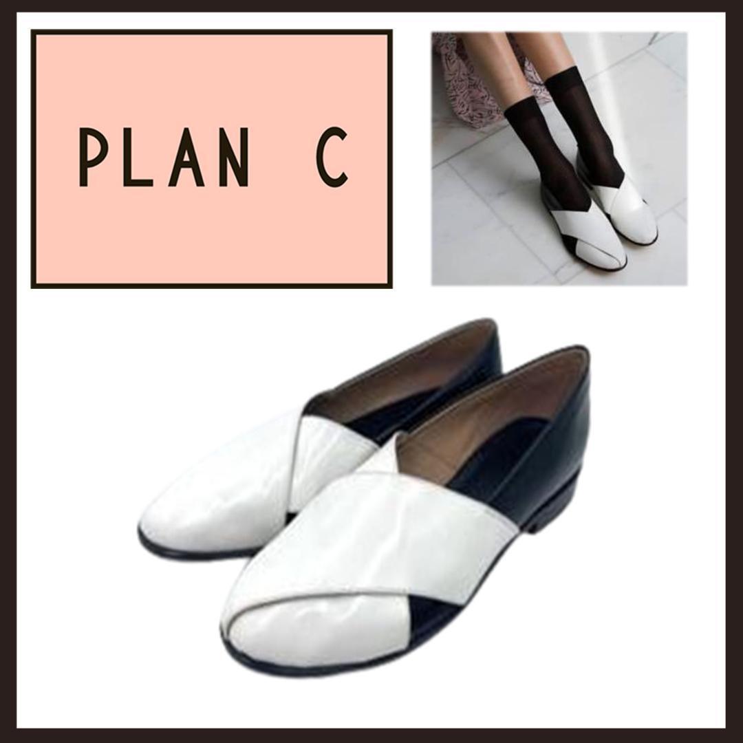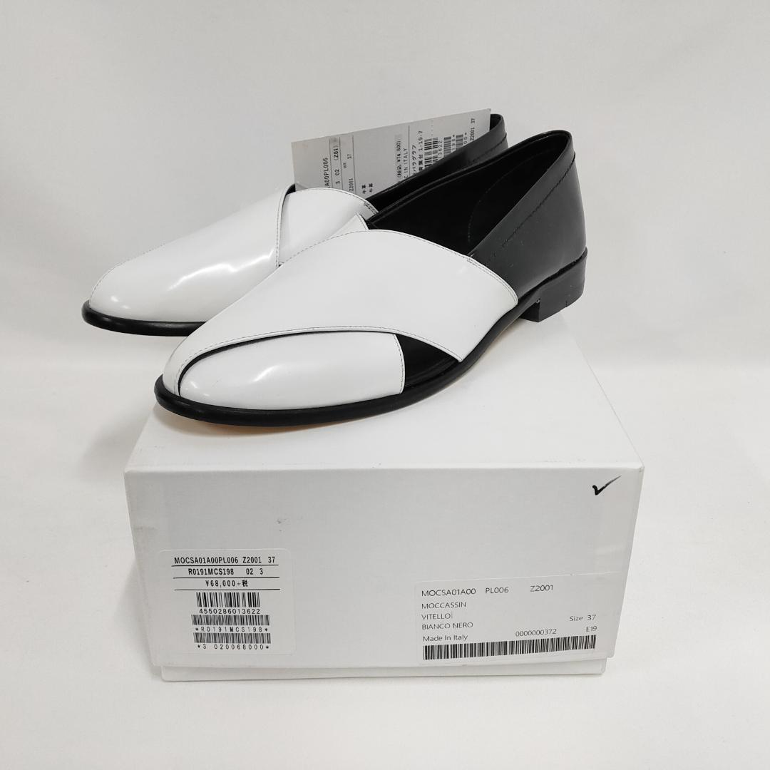 ○★新品 未使用 PLAN C モカシン ヴィッテーロ フラットレザーシューズ ホワイト×ブラック 37(プランシー)○●