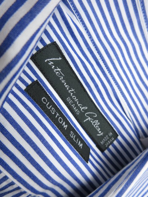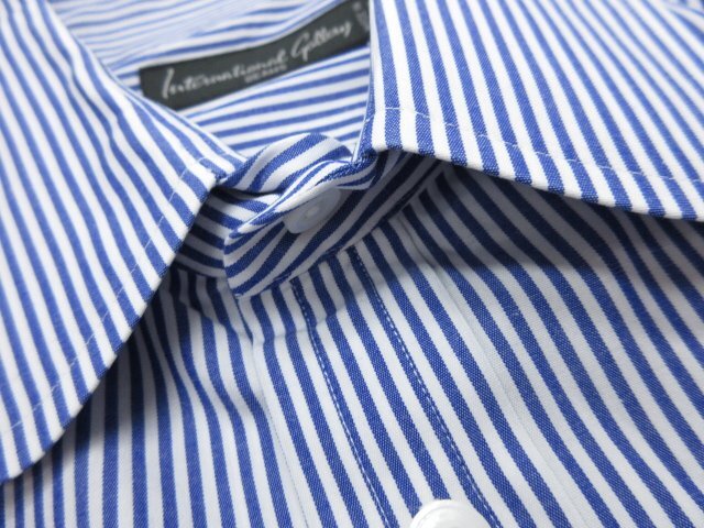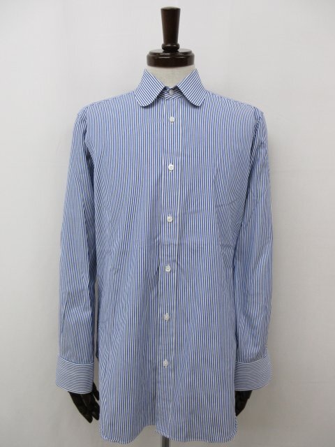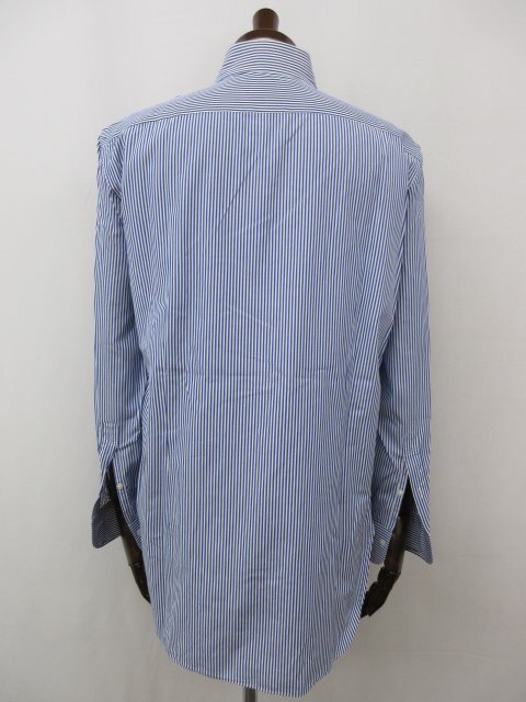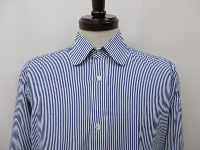 超美品【インターナショナルギャラリービームス】 ラウンドカラー ストライプ柄長袖シャツ (メンズ) size16/41 ブルー×ホワイト◇33MK5743