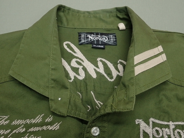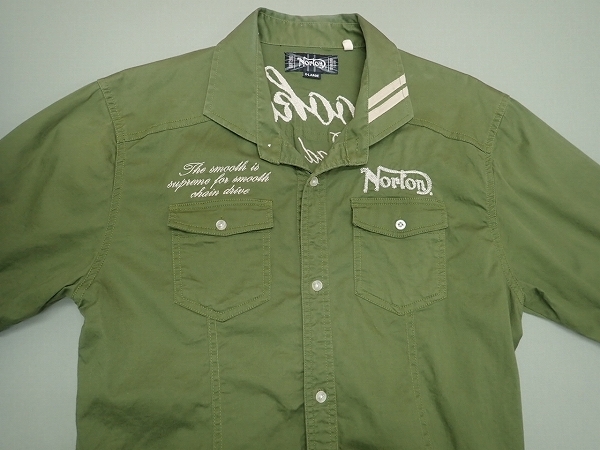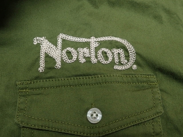 Norton ノートンのシャツです。胸や背面に刺繍ロゴデザインです。素敵にお使い頂けると思います。気になる方は是非ご検討下さい。 | |