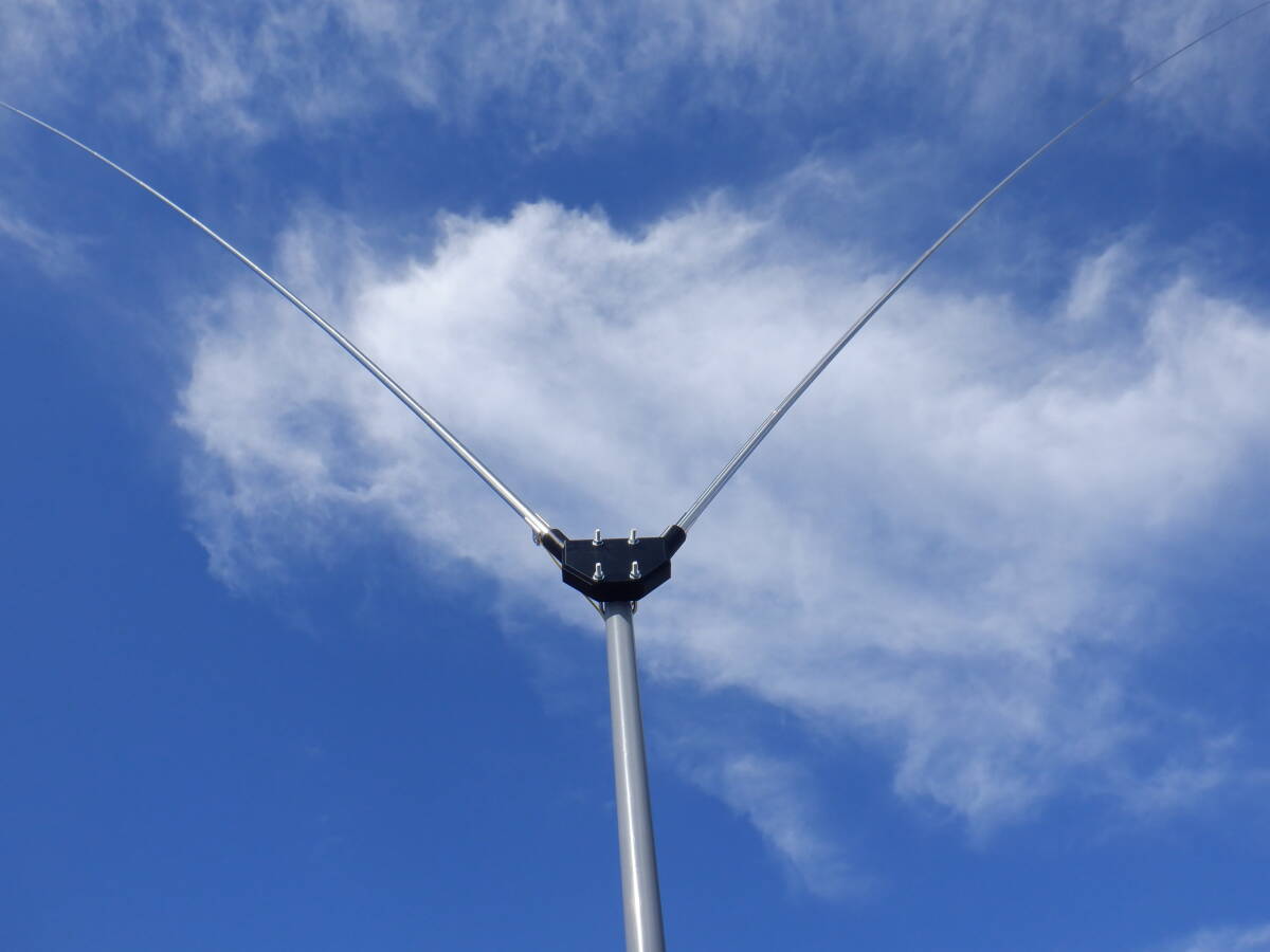 エレメントの長さを希望周波数に同調させて左右の長さをアンバランスにするオフセット給電で