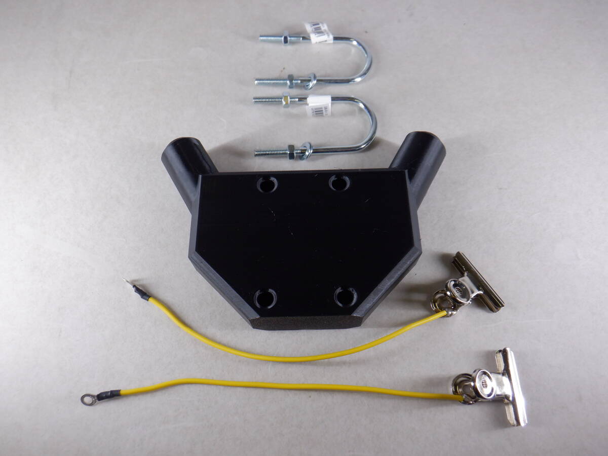 目玉クリップとM4の丸端子を付けた20cmコード2本とUボルト2個のみです